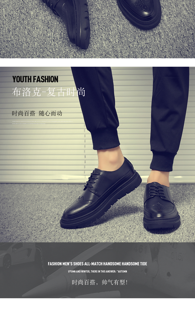 冬季男鞋布洛克鞋子男士潮增高韩版