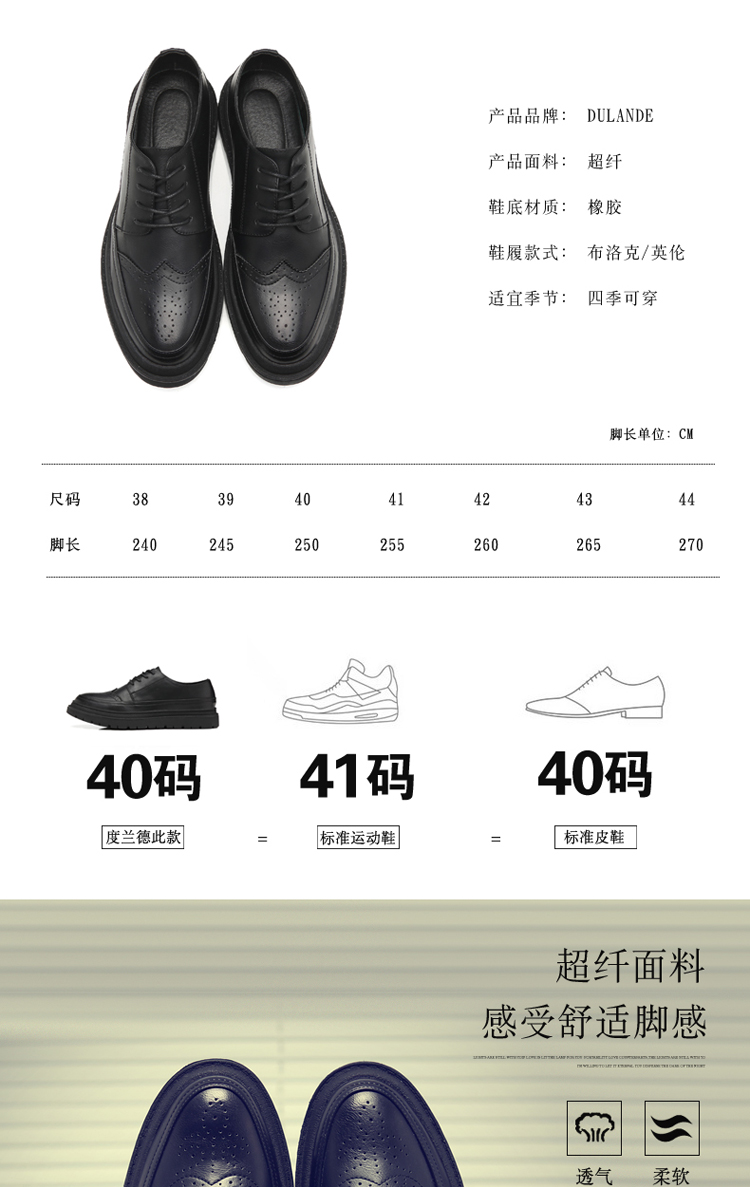 布洛克雕花时尚设计,橡胶大底防滑,海波离增高鞋垫,缓震减震,透气轻便,当代商务休闲之履!!!!