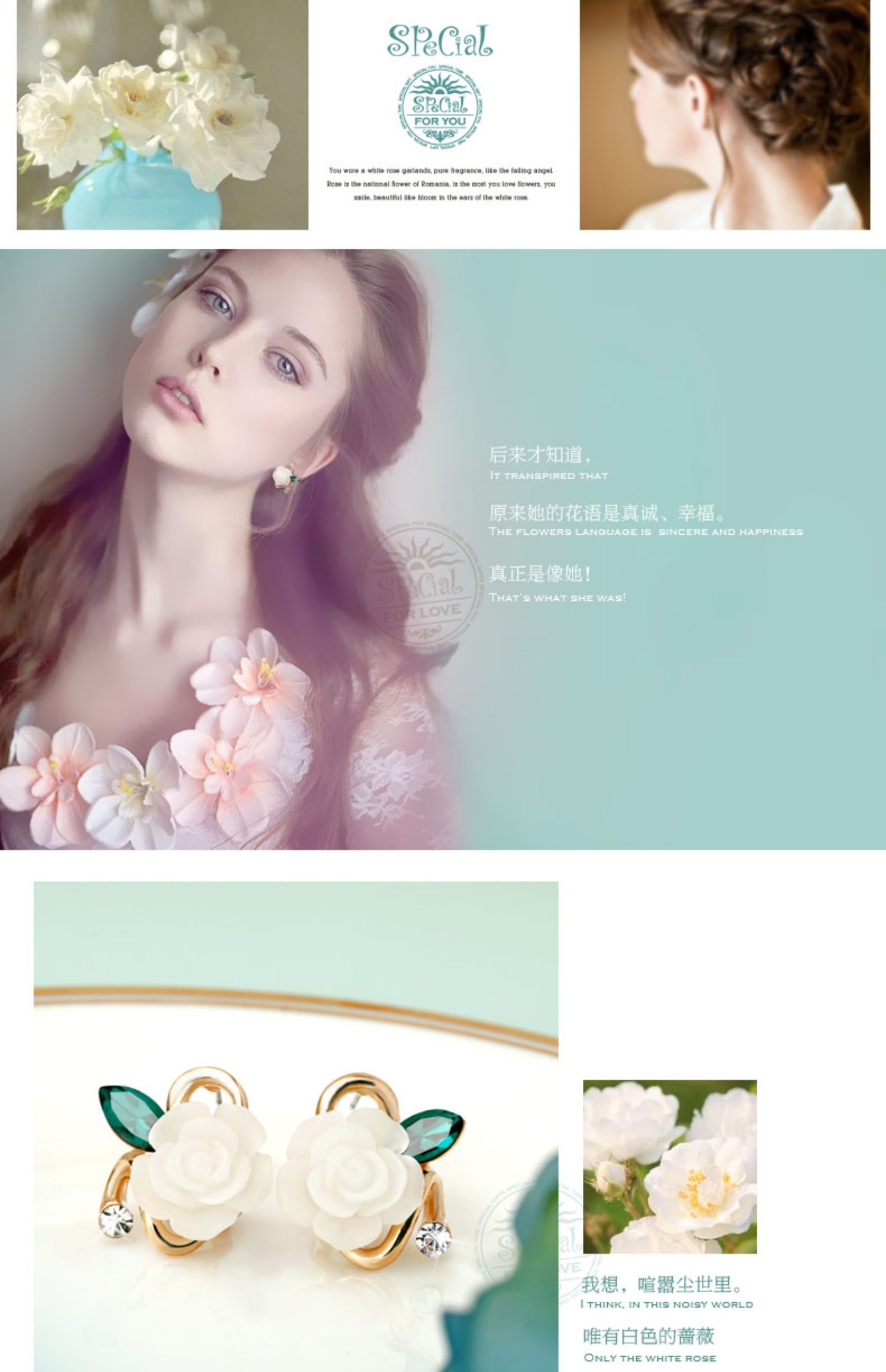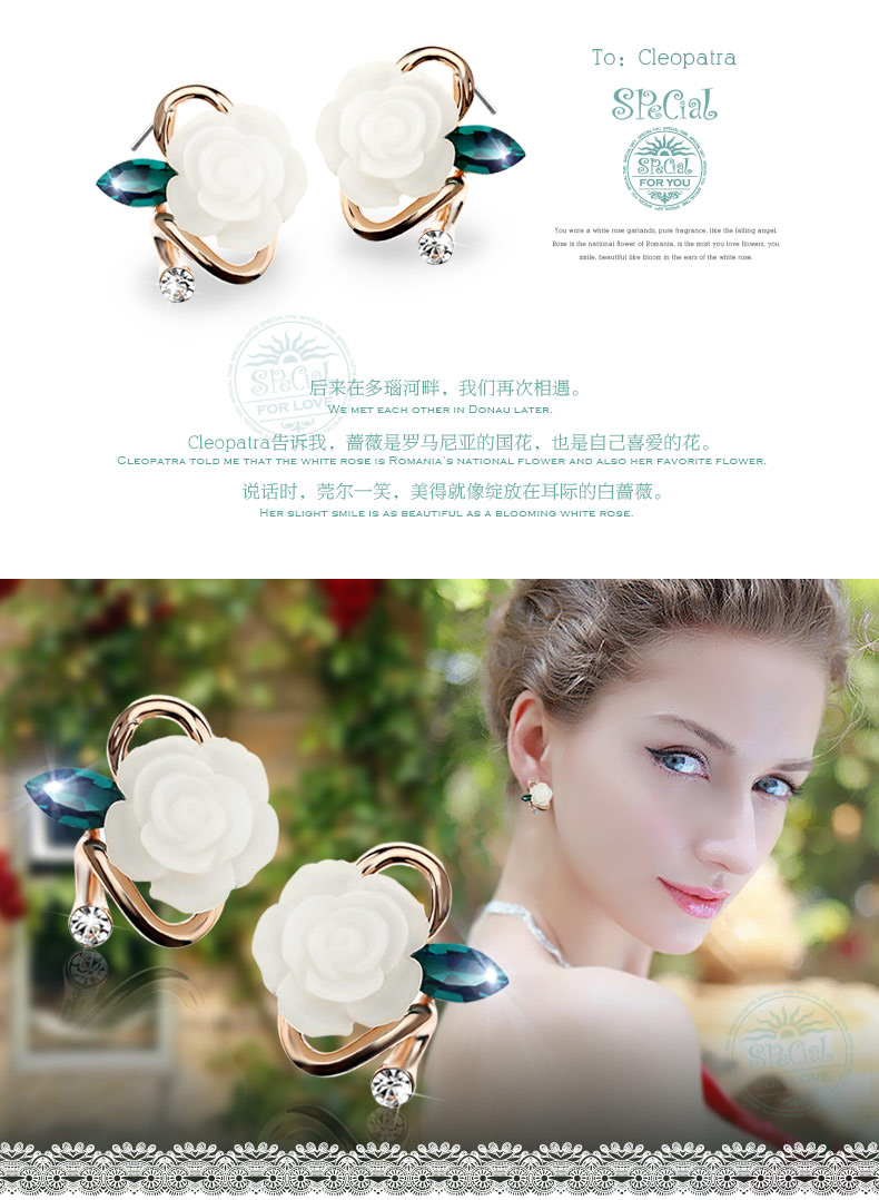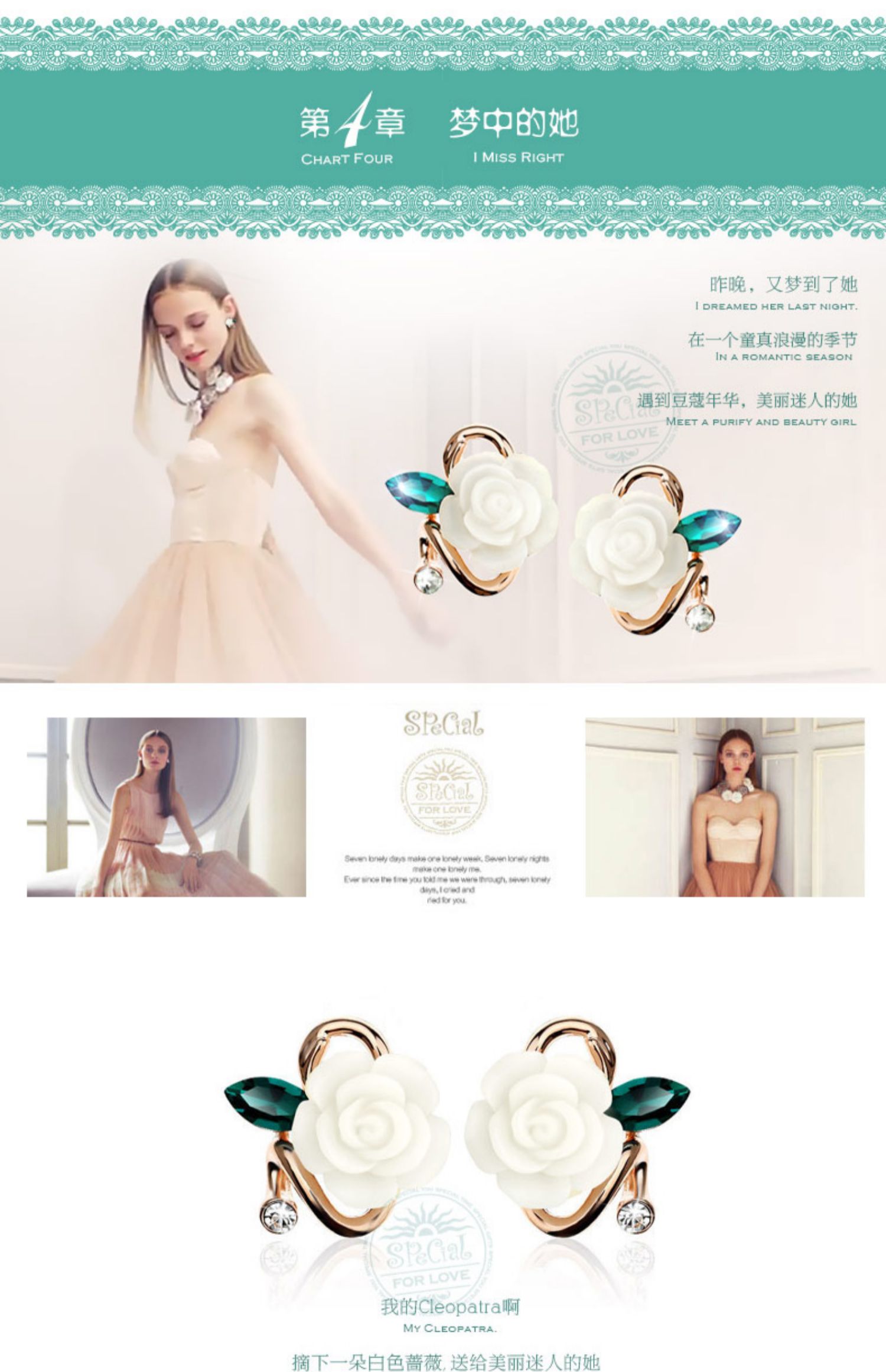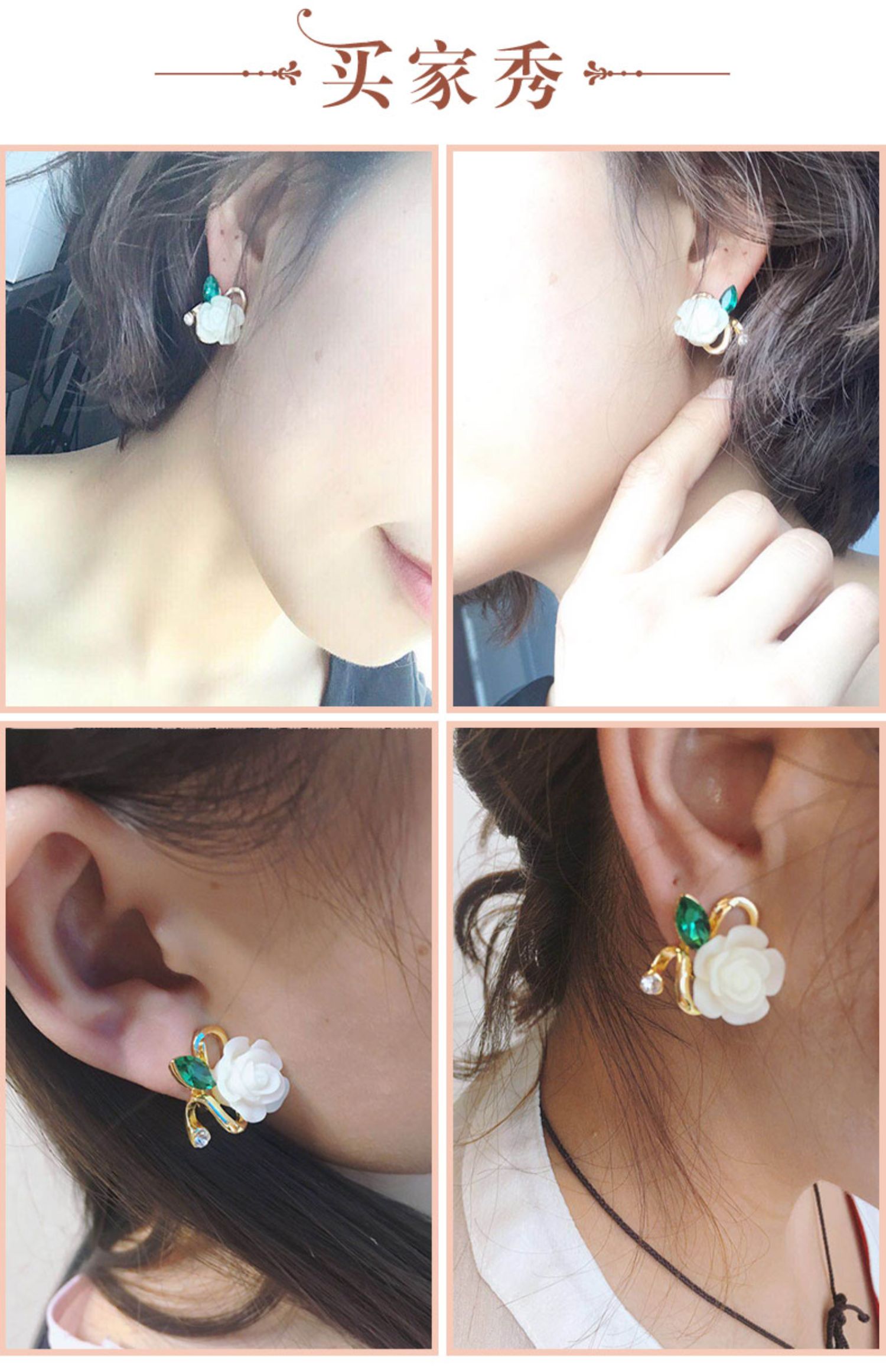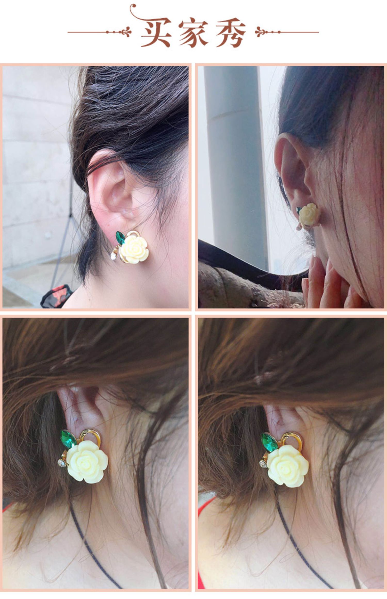 银针花朵耳环,浪漫的蔷薇花,一抹清新绿意,耳夹设计,不怕你没耳洞,精工细做,精致简洁,脱俗雅致搭配,优雅灵动,女神必备。