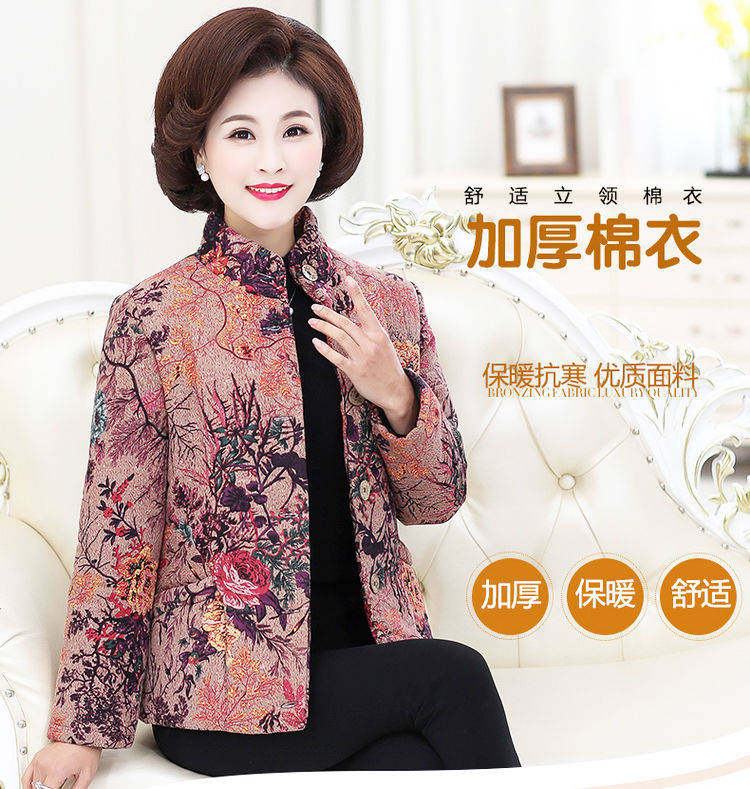中老年奶奶棉衣加绒加厚棉袄妈妈装外套