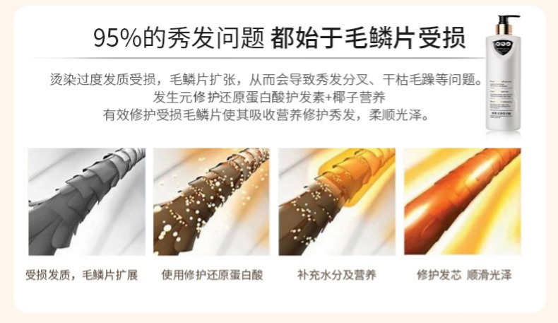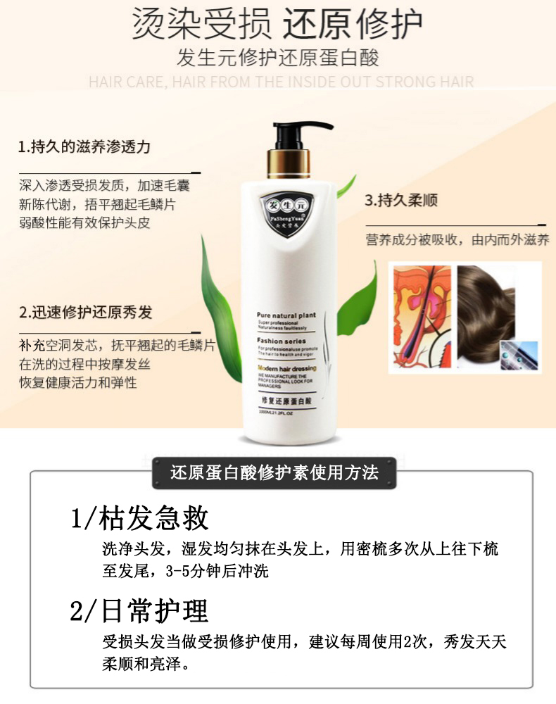 线下沙龙合作品牌,1000ml大容量的营养酸还元蛋白,快速渗透,急速修复,深度滋养修护染烫受损秀发,改善毛躁,令秀发持久柔顺光泽,一次使用就能看到效果!