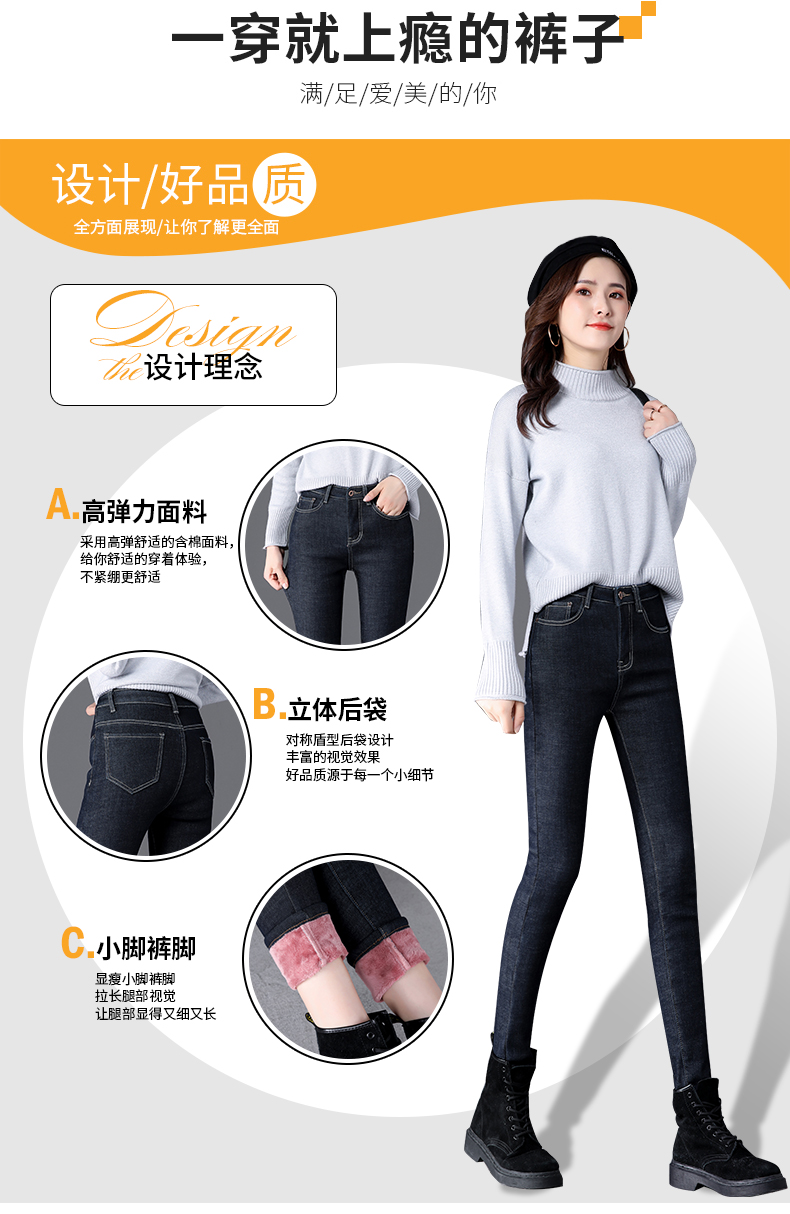 【推荐理由】亲肤舒适加绒牛仔裤,3D立体剪裁版型,收腰、显瘦、提臀、显腿长,加厚加绒持久保暖不臃肿,专注细节制作,彰显品质,加密细绒,柔软亲肤,为舒适而来!