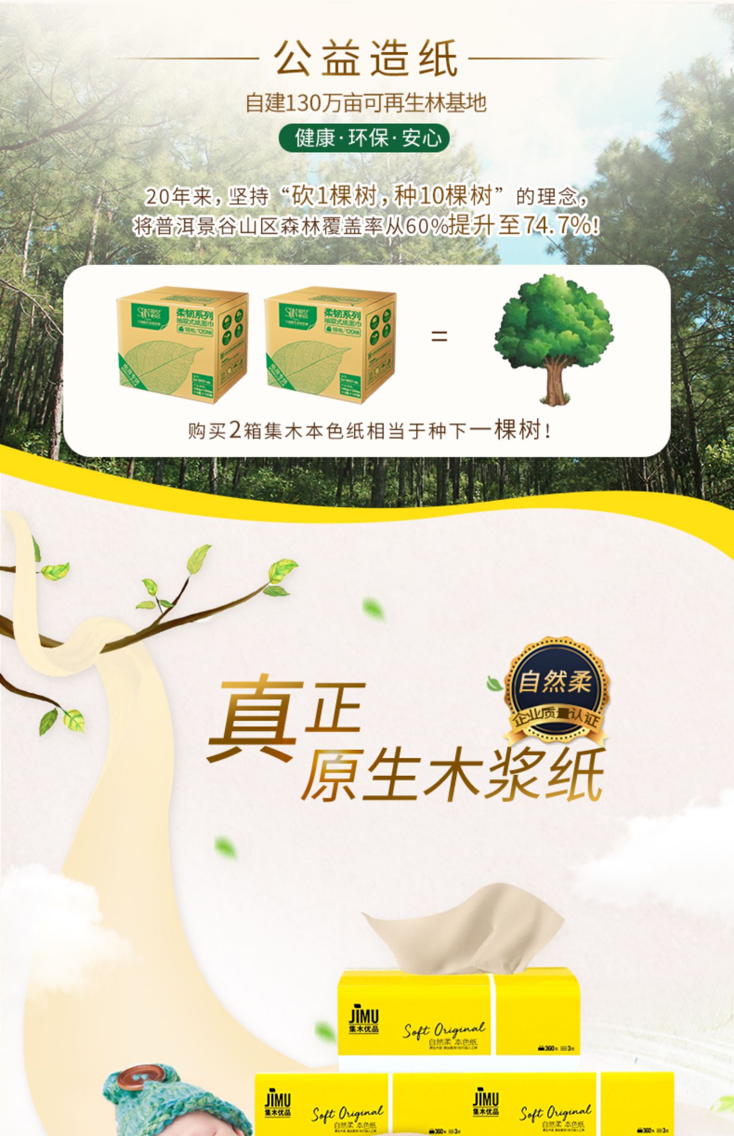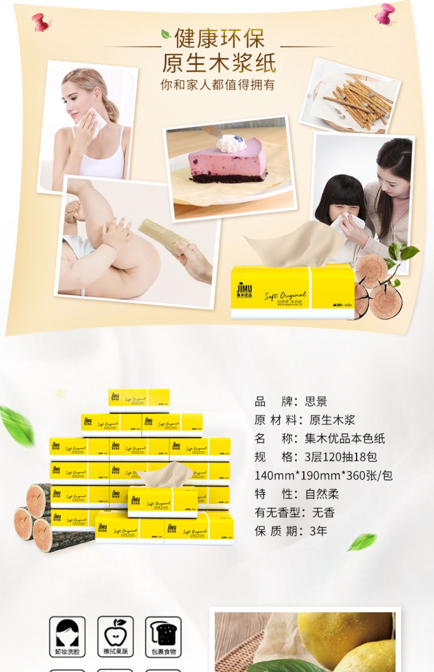 【思景】真正天然原生木浆纸,环保健康,质地细腻,柔韧亲肤,无尘无屑,无漂染,母婴可用,吸水性强。