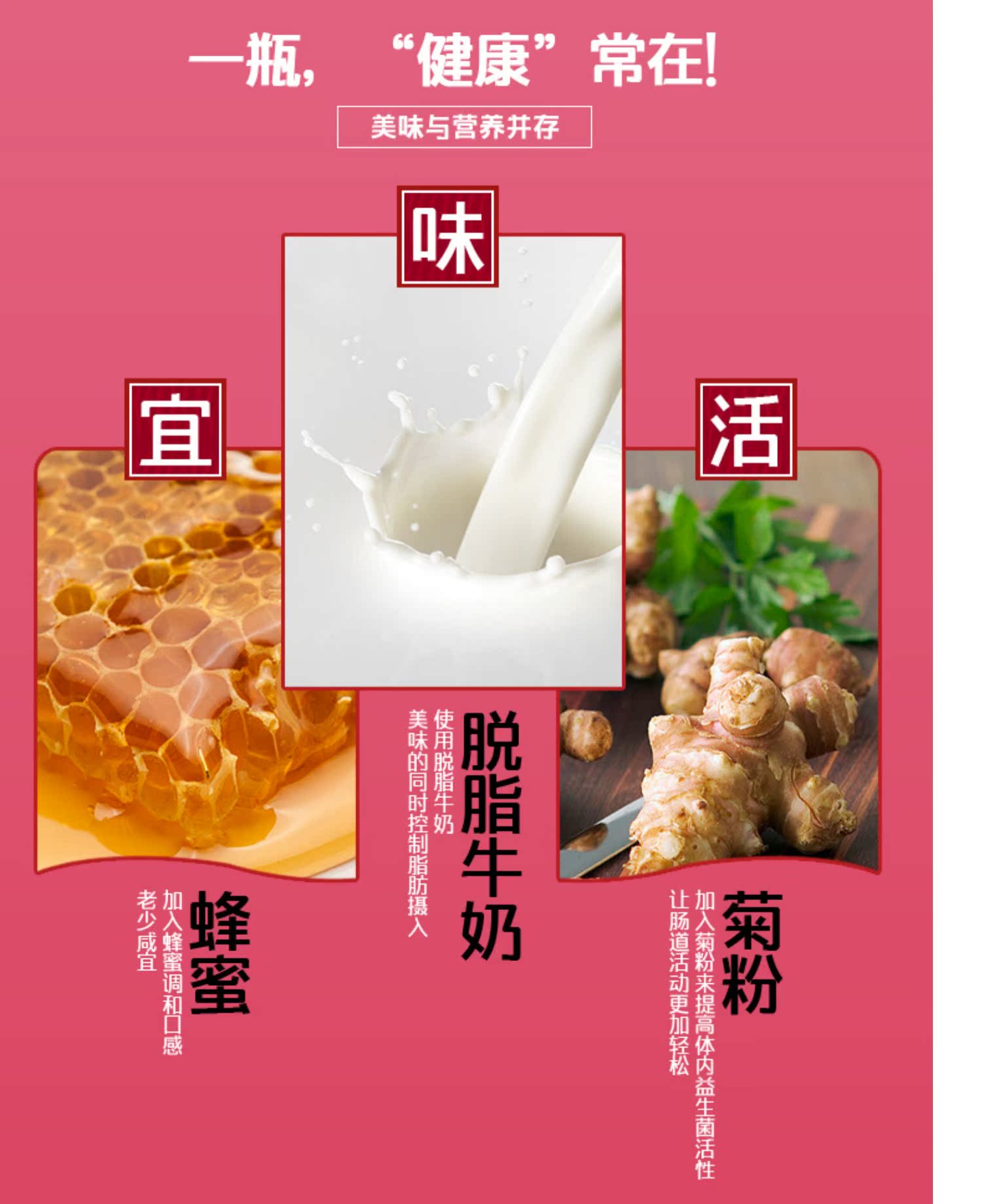 达亦多乳酸菌饮料,日本DyDo公司,助于营造自身良好益生菌环境的乳酸菌饮料。其乳酸菌中加入菊粉和蜂蜜,酸甜适中且可补充可溶性膳食纤维。同时,乳酸菌采用新西兰进口脱脂牛奶,老少咸宜,好喝不发胖