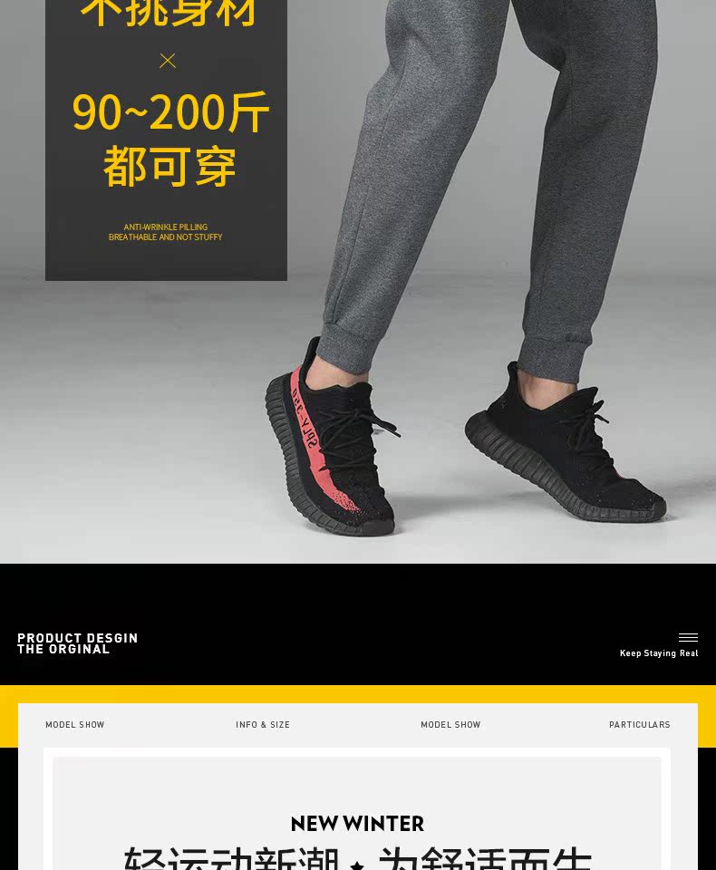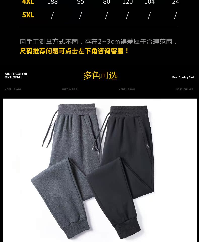 纯棉冬季男士运动裤男卫裤加绒保暖