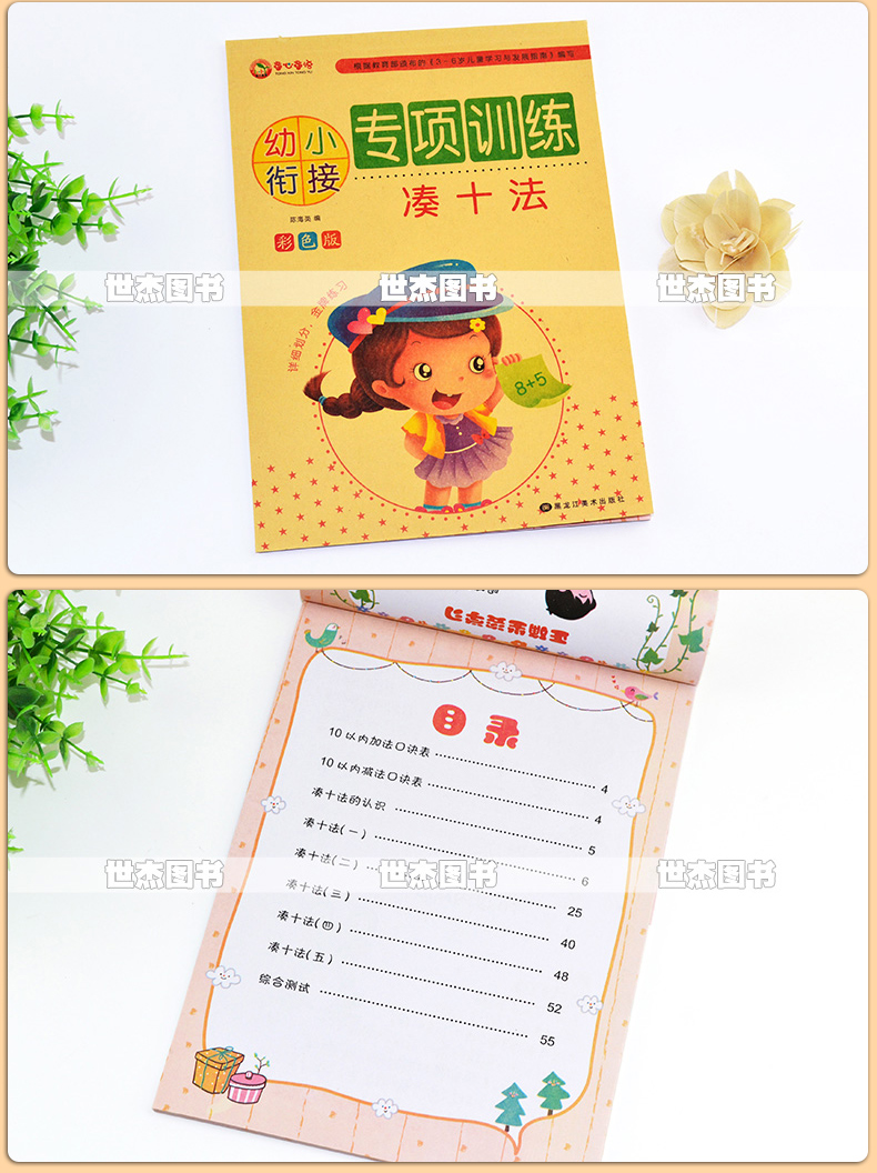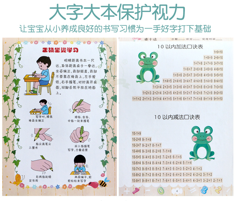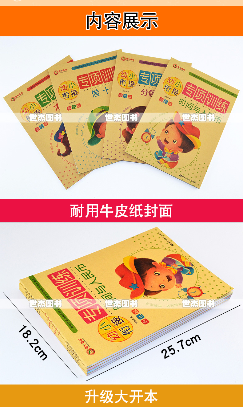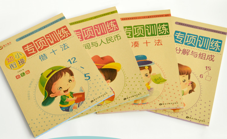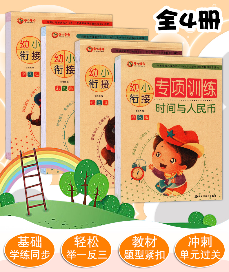 开学必抢!全套4册大班升一年级幼小衔接专享训练,4-7岁幼升小入学准备幼儿园标准整合教材,10以内加减法天天练,彩页版,针对性训练,每节都有复习,老师推荐!【2019升级版】