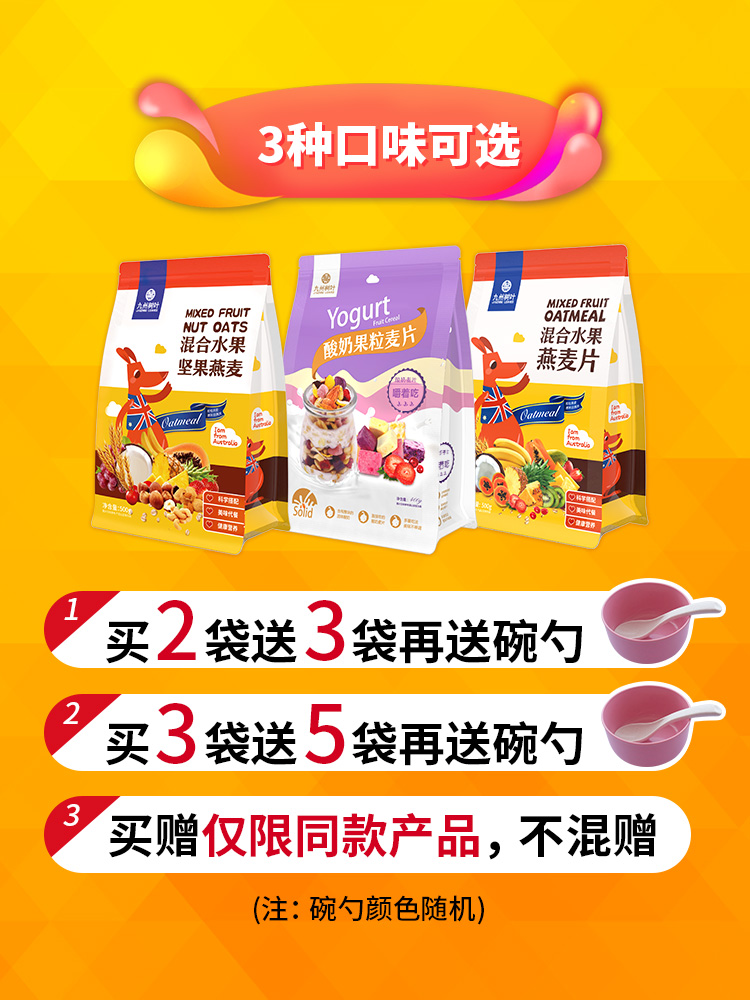 【买2送3,送碗勺】澳州进口混合水果燕麦片,8种水果,减脂瘦身,维C果干,营养丰富,酸奶冲饮,免煮即食,3分钟即冲即食,水果麦片,坚果麦片,治好你的“”早餐懒癌”