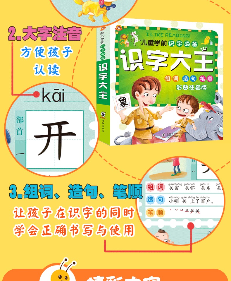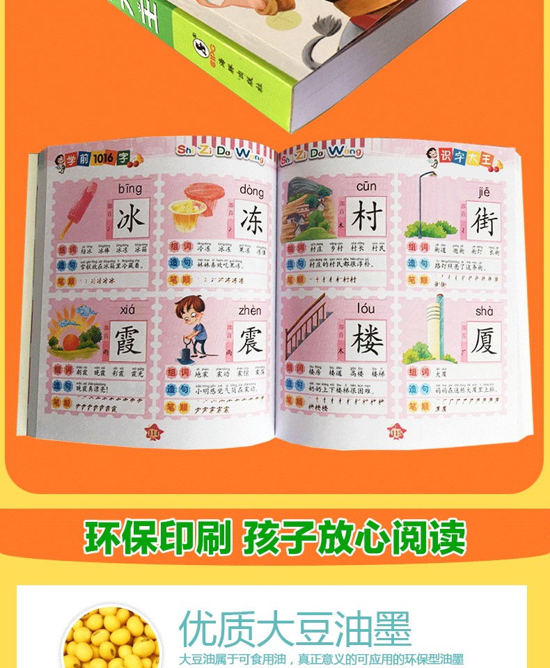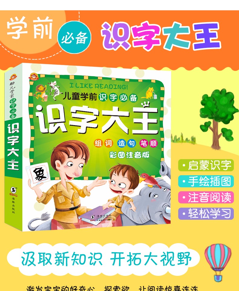 幼儿园宝宝学习教材,儿童早教启蒙认字书,识字大王,学前常用1500字,大版本印刷,插图精美,纸张厚实,拼音标注,配图生动,提高孩子阅读兴趣,幼小衔接学前识字必备,一年级学组词造句笔顺必备。