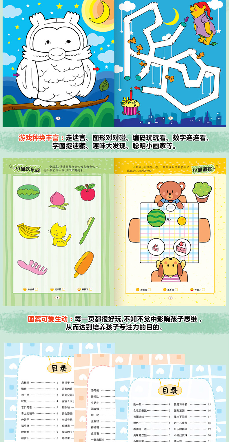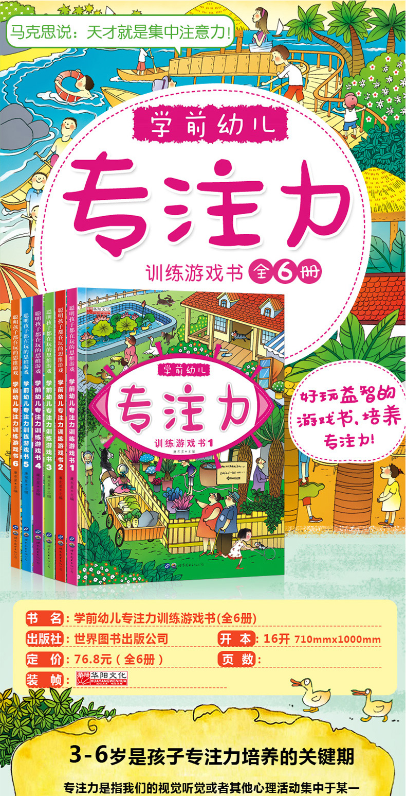 儿童大脑开发益智图书,幼儿园学前专注力,逻辑思维训练游戏书全6册,16开大版本,全彩印刷,内容有趣。培养宝宝专注力,开发大脑潜能,提高智力水平,聪明孩子都在玩的亲子游戏书,宝妈必备。