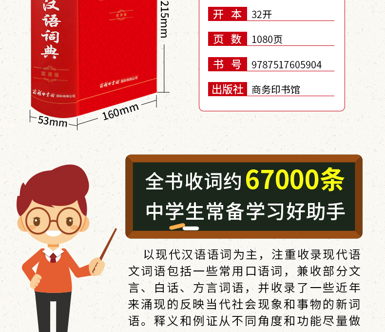 【商务印书馆】现代词典收录语词汇7万多个,中小学通用版,以现代汉语语词为主,全书涵盖小学到高中所需基本词汇,一本就够孩子用到高中!!超值价速度抢。