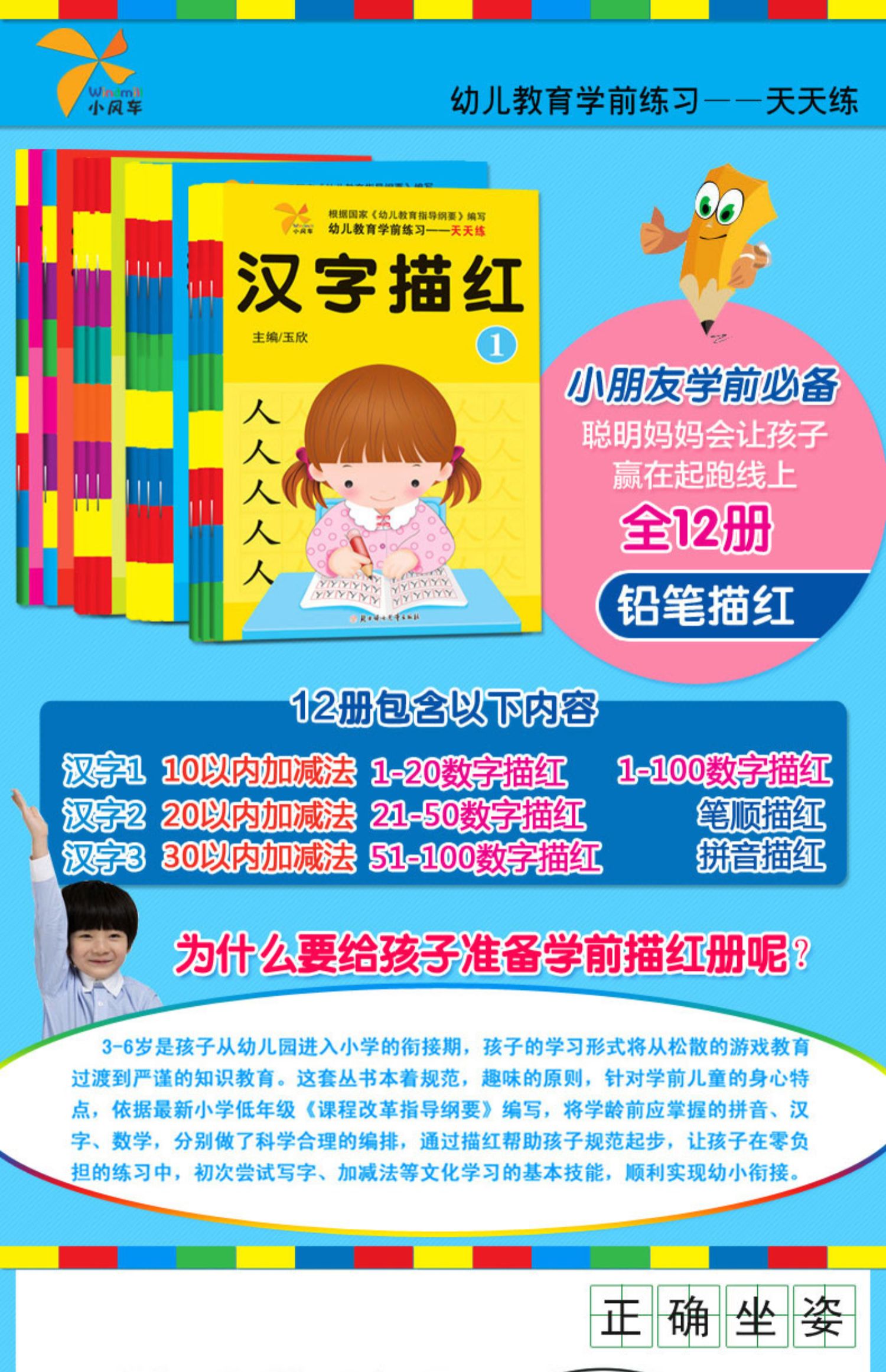儿童幼小衔接拼音汉字笔顺描红本,2-9岁幼儿园学前宝宝学习教材,数字拼音学识字描红系列,大字印刷,全套12册,超厚一摞。学前儿童和幼儿园宝宝,寒假必备练习册,练字描红本,宝妈入学准备早教必备!