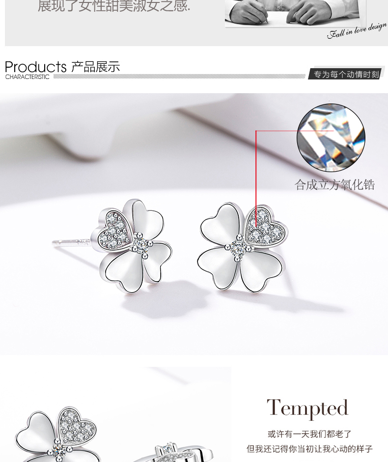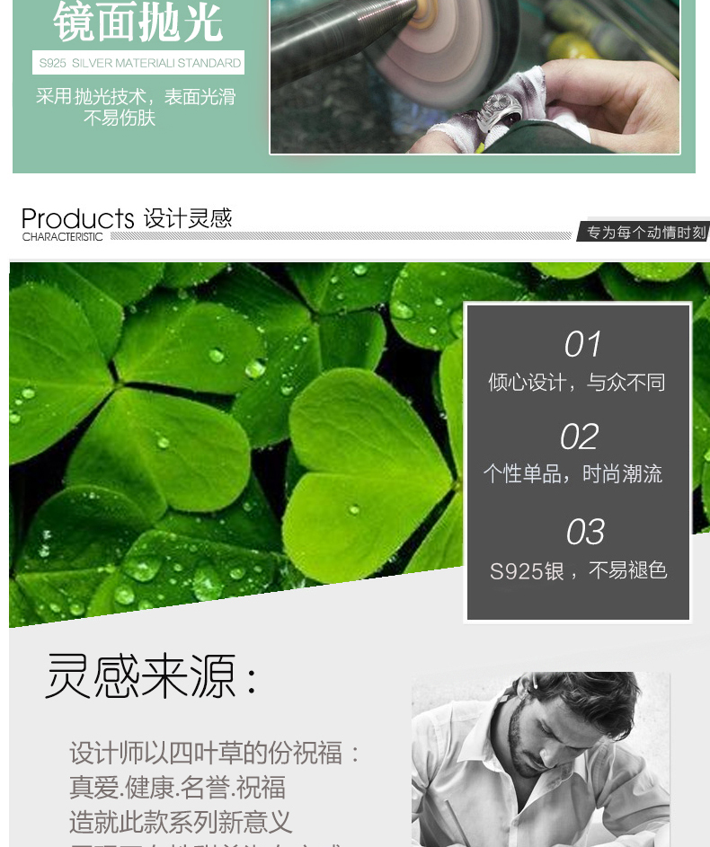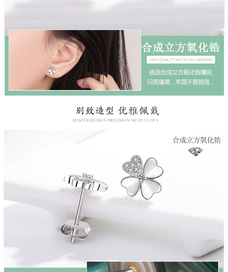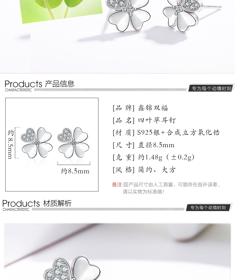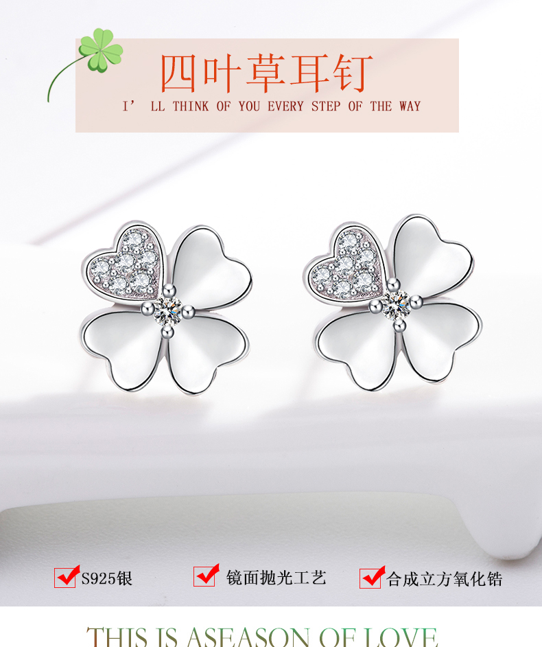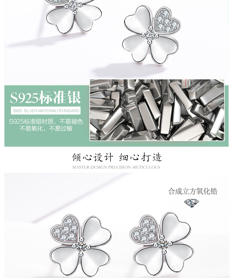 采用S925纯银材质,360度细腻抛光,合成立方氧化锆,闪耀有光泽,爪镶工艺,不易掉钻,尾链可调节长短、把四叶草幸运美丽送给她