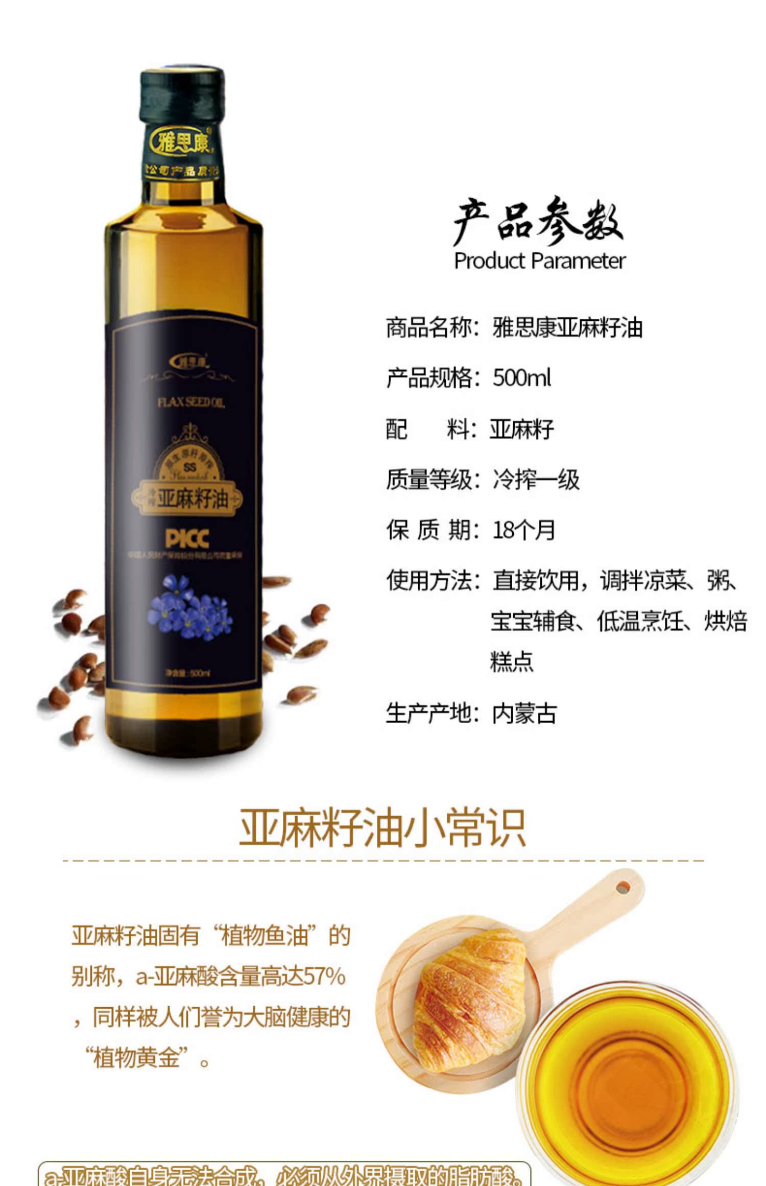 【雅思康亚麻籽油】【抖音火爆款】,来自北纬41°内蒙古大草原,可以直接喝的亚麻籽油,采用传统物理冷榨技术,营养不易流失,天然健康,晶莹透亮,清澈没有杂质~
