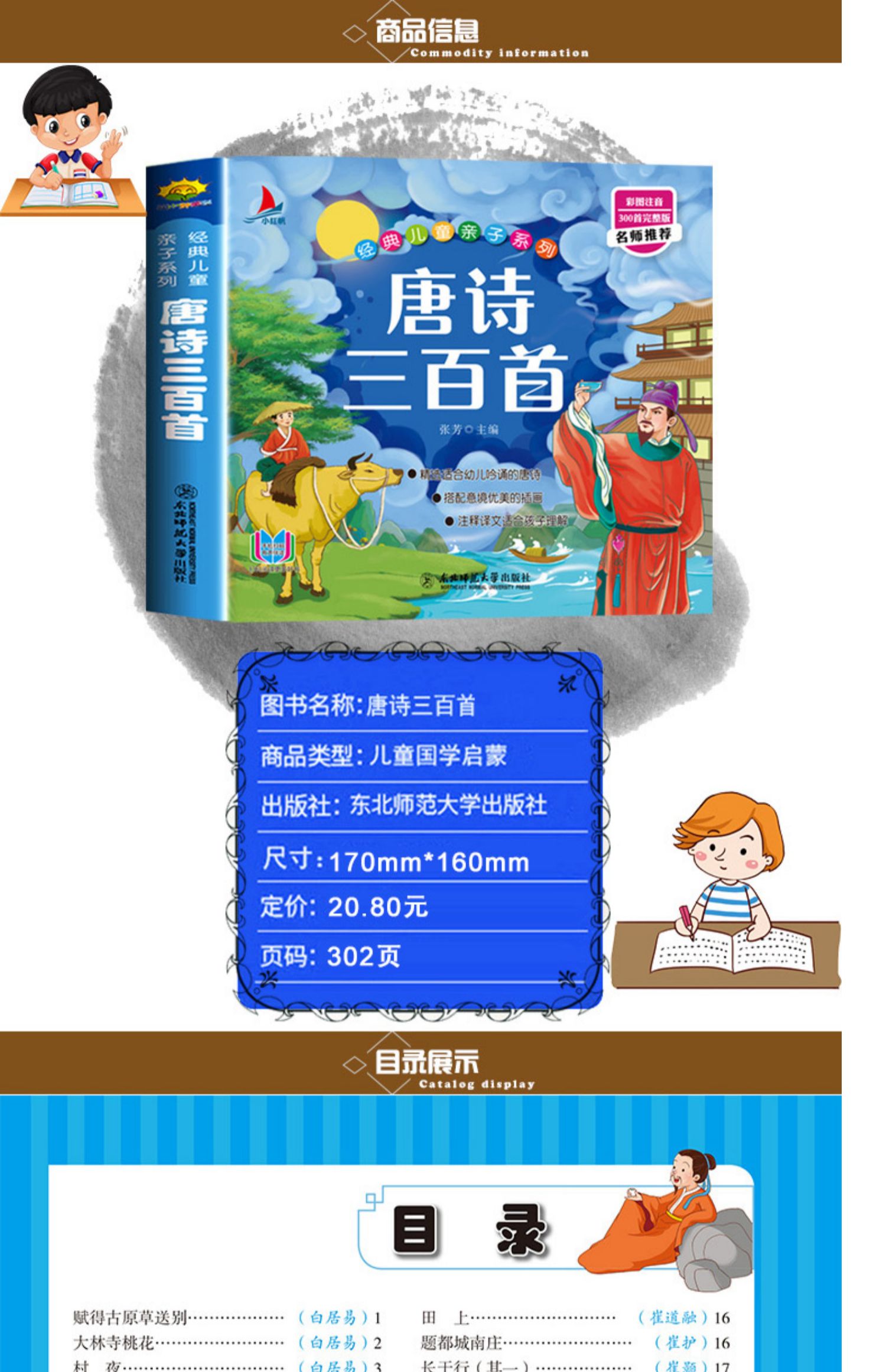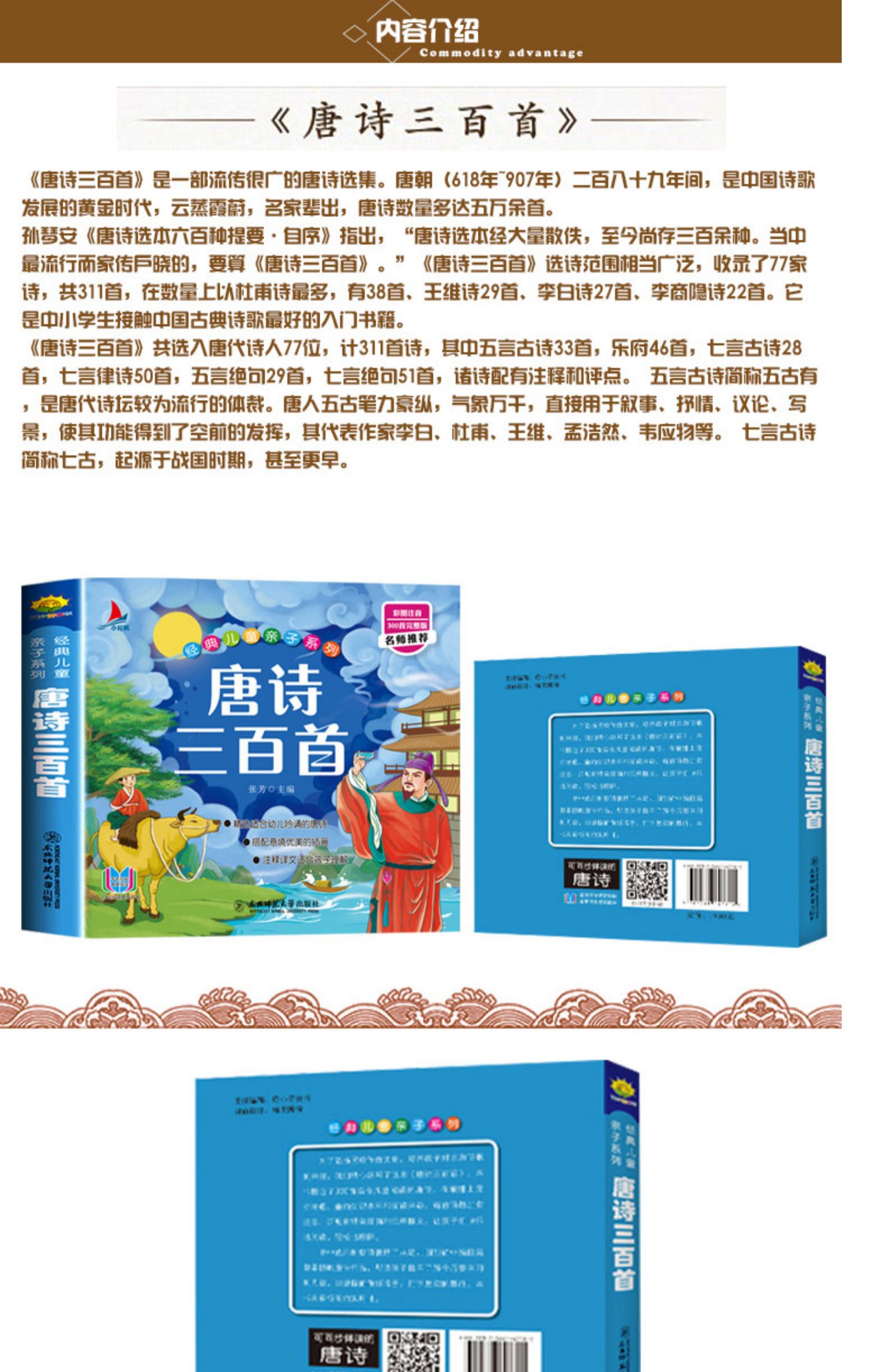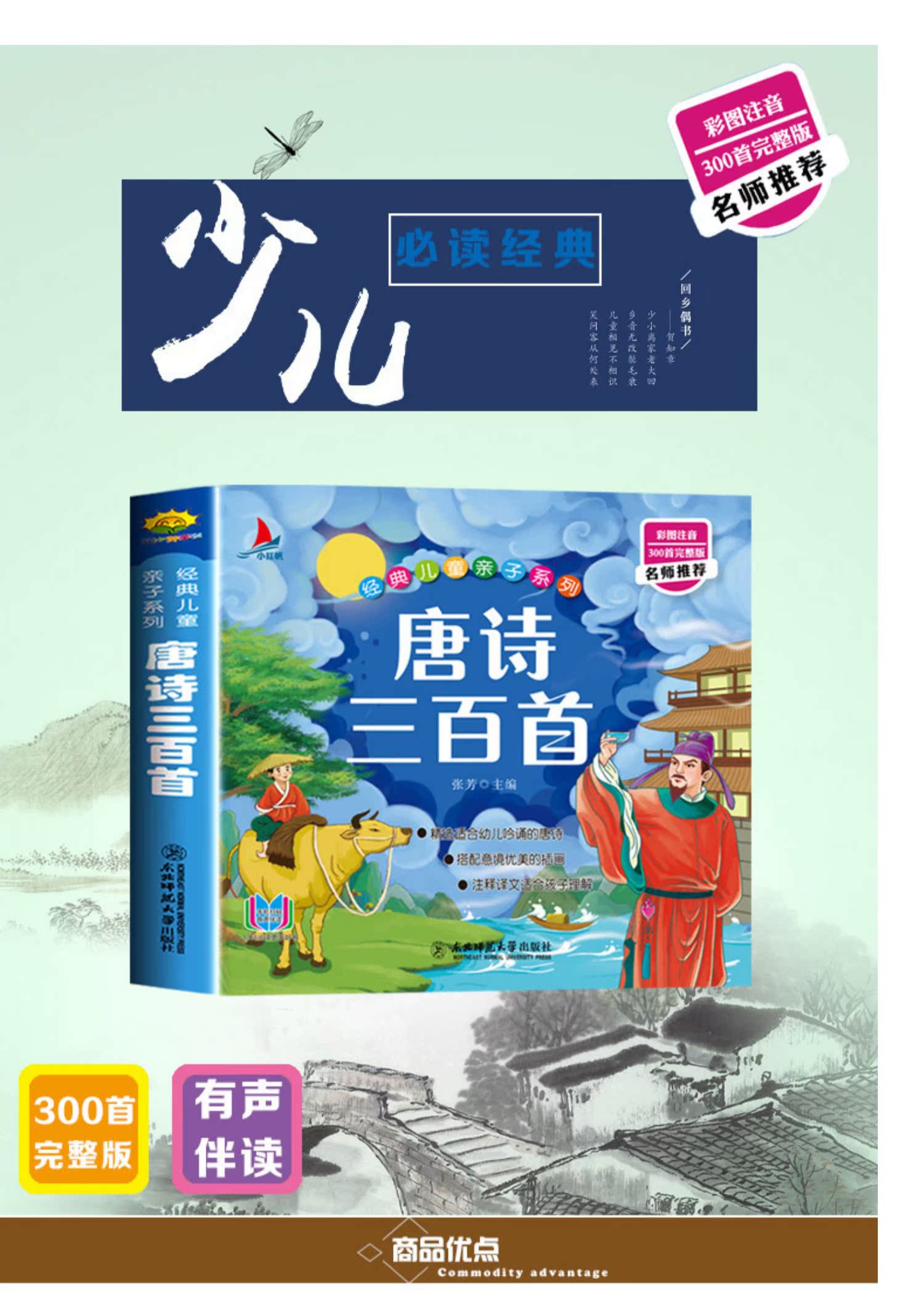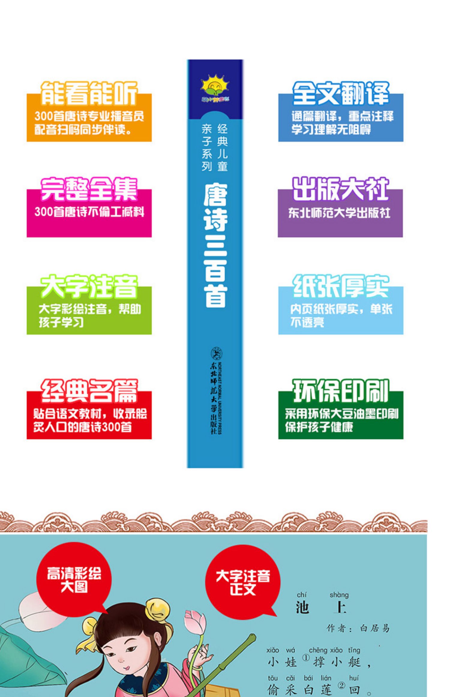 儿童国学启蒙经典图书,唐诗三百首彩图注音版,完整300首。大字注音,译文详细,并配有精美插图,纸质很好,可有声伴读,幼儿园宝宝早教启蒙必备,小学生开学季必读课外读物,宝妈必备睡前亲子故事书。