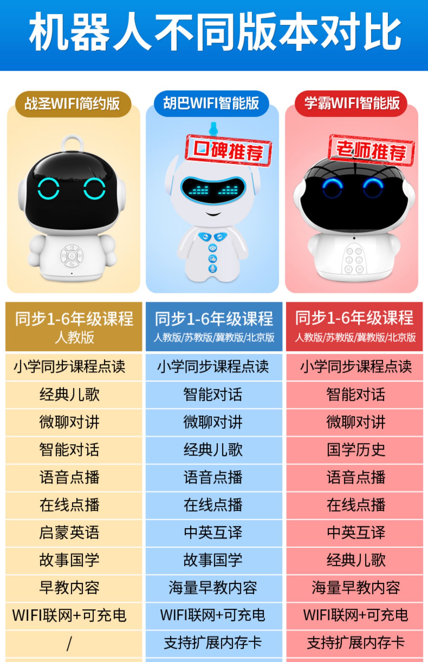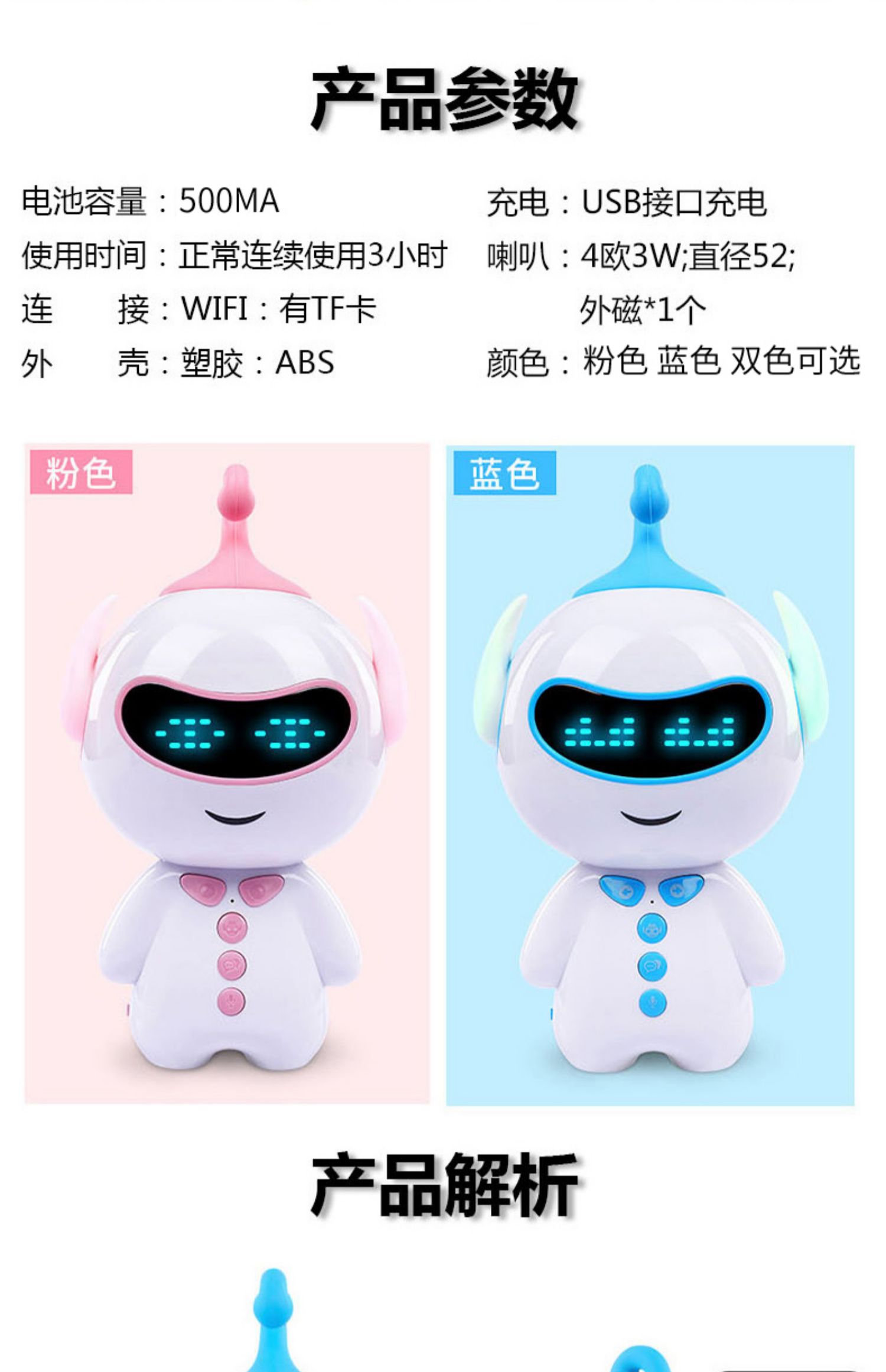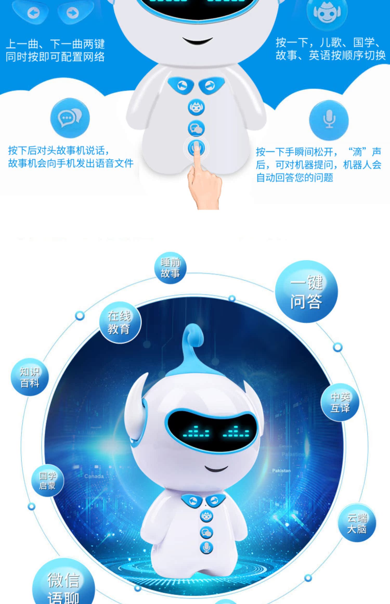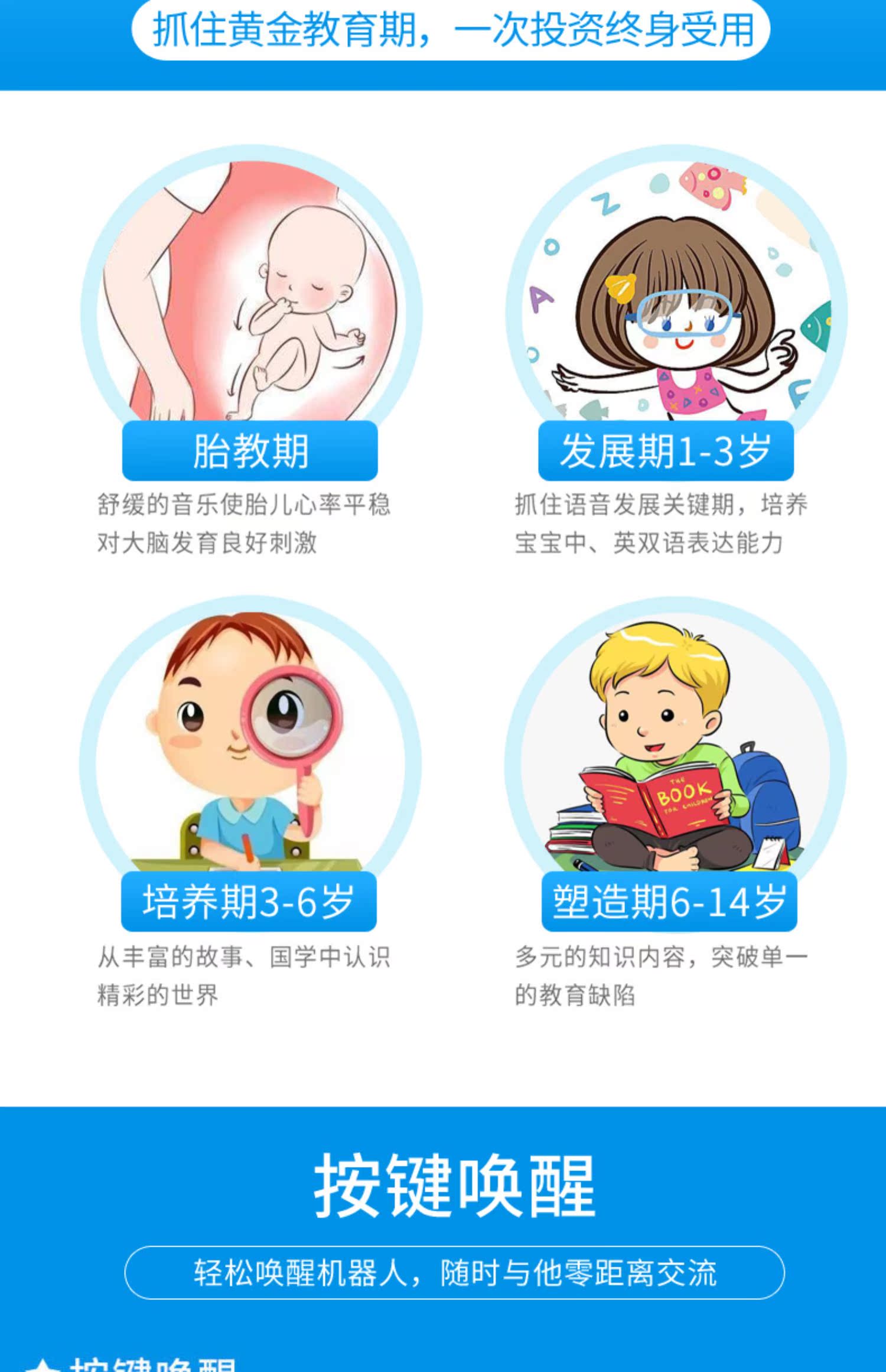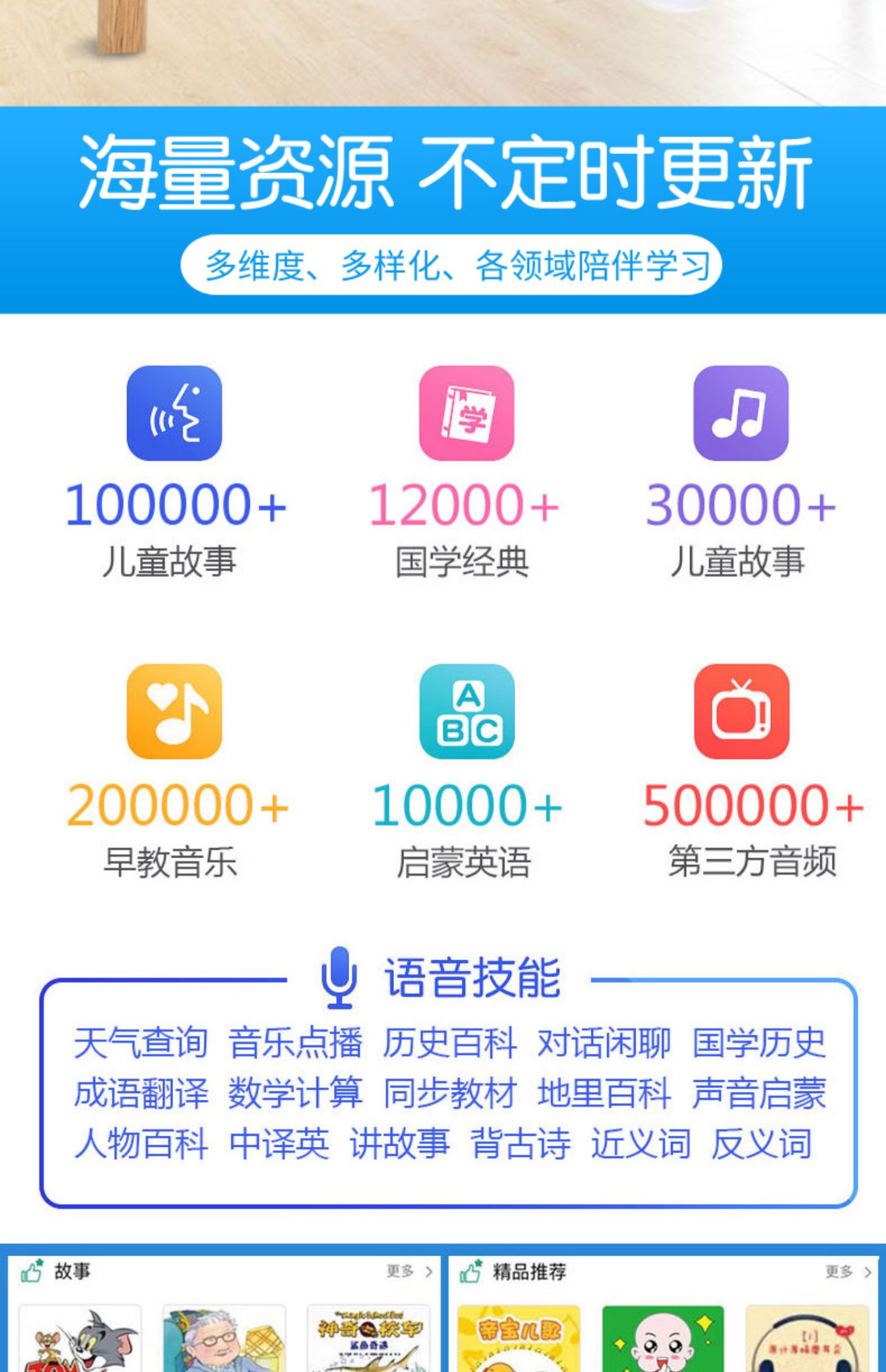AI升级版专利,耐磨耐摔,智能陪伴,微信语聊,算术解答,百科故事,英语翻译,丰富早教内容,高保真纯正音质,同步小学1-6年课程,做孩子的辅导老师!