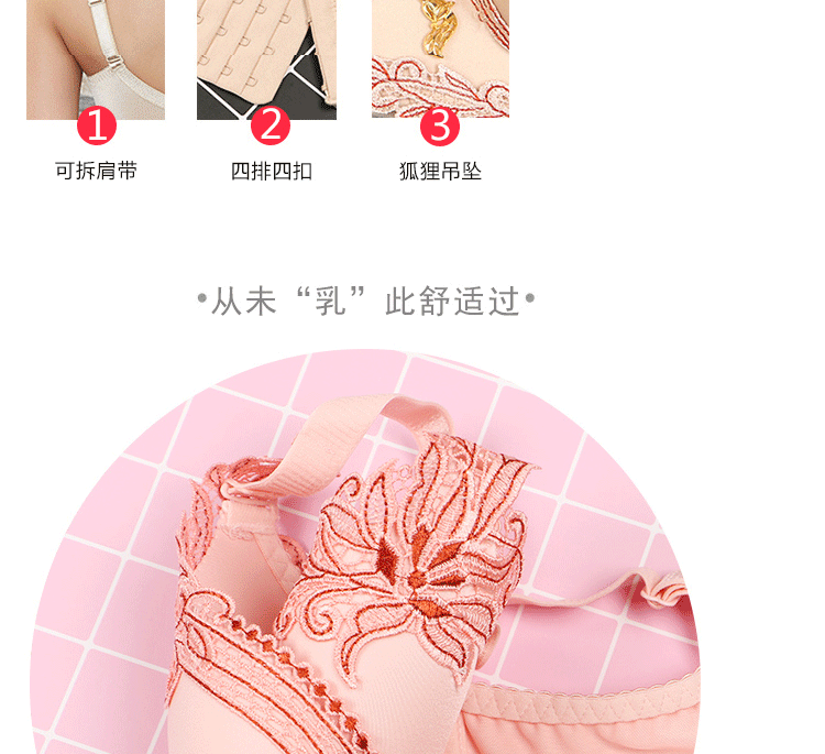 【高端品质】精致刺绣、奢华性感,罩杯柔软,舒适透气,加宽侧翼,侧收副乳、小胸变大、超聚拢,防下垂。你从未体验过的深V诱惑,商家巨亏,不聚包退!!手慢无!!!