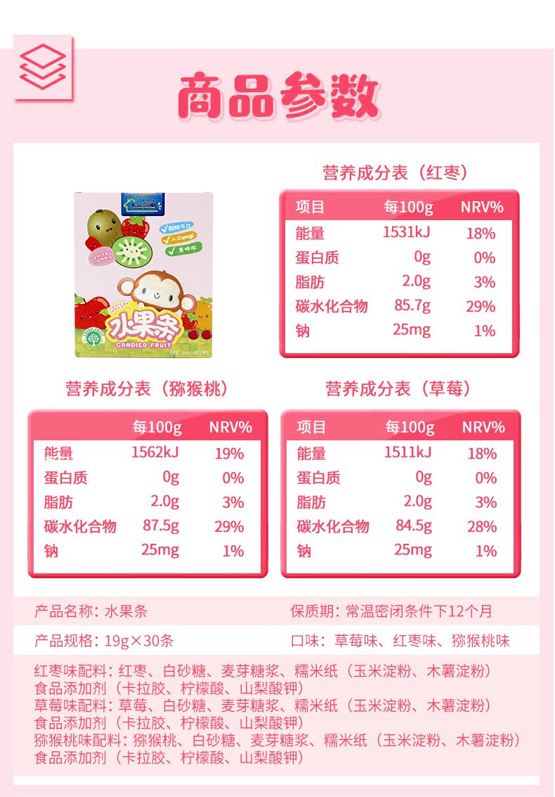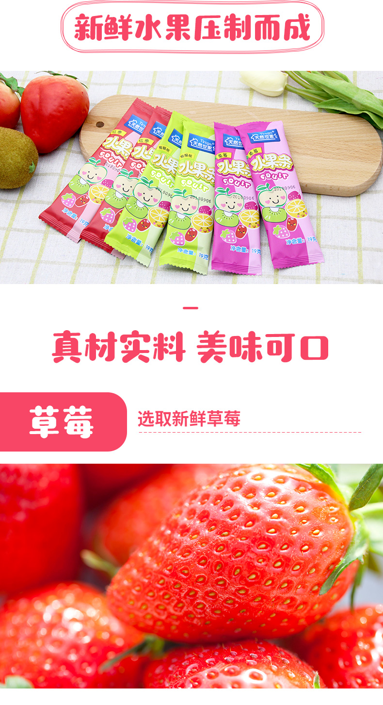 0色素!水果萃取精华!儿童水果条,草莓+猕猴桃+红枣味,采用新鲜水果,营养多吸收,独立封装,安全卫生,携带方便,营养健康!