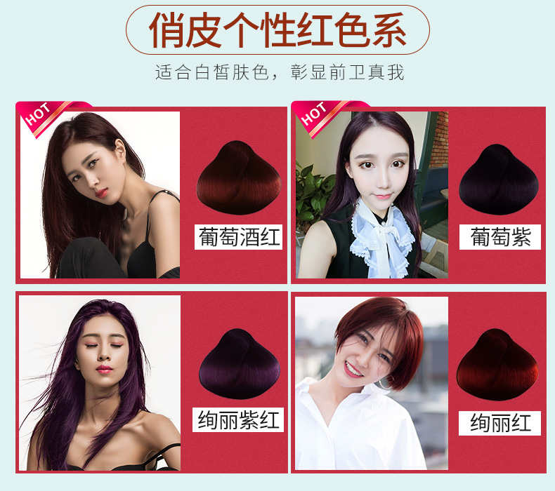 纯五贝子精粹染发剂,无异味,无刺激,不粘头皮,染完不伤发,天然温和,染发操作便捷,10种颜色可选。