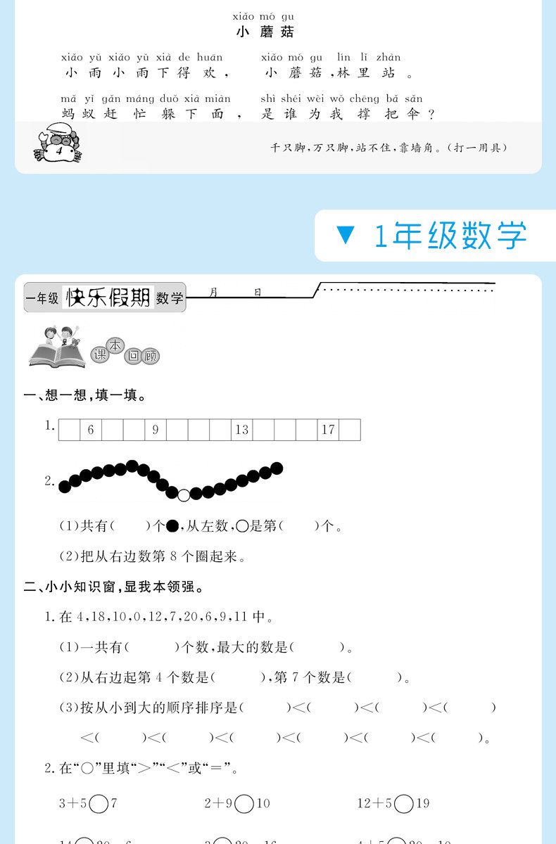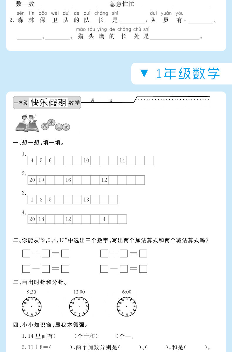 寒假作业一年级语文数学假期作业