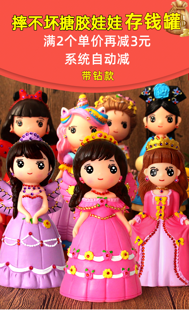 儿童涂色玩具石膏娃娃,彩绘存钱罐白胚绘画diy手工涂鸦摔不坏搪胶,送12色颜色。调料盘,彩图一张,送2支画笔,环保颜料,轻松上色,开发孩子动手能力!!!