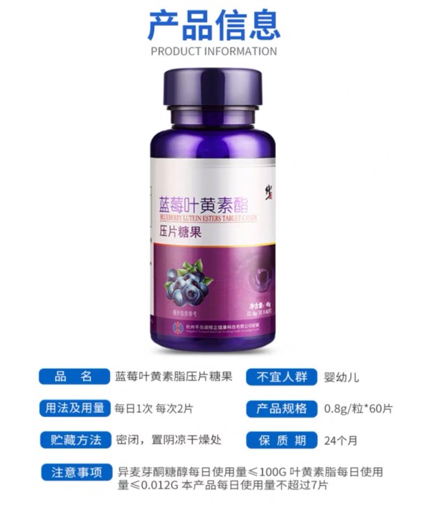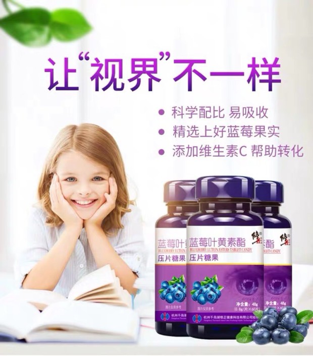 【修正蓝莓叶黄素酯压片糖果】天然植物提取,叶黄素可吸收大量蓝光,蓝莓活化视网膜,成人儿童老人都可食用。关爱心灵之窗,远离近视。