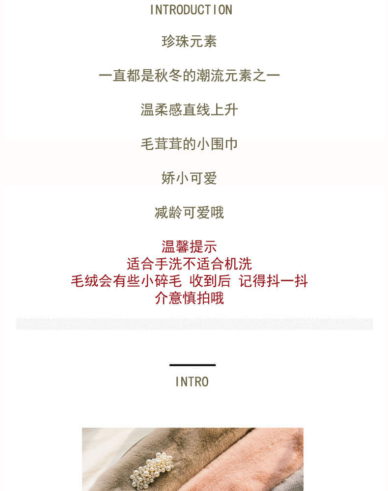 【下单送网红珍珠发夹】珍珠元素一直都是秋冬潮流元素之一,温柔感直线上升~毛茸茸的小围巾,减龄娇小不失可爱~亲肤舒适无刺激,多色可选,戴着出去你冬天就是靓的妞~