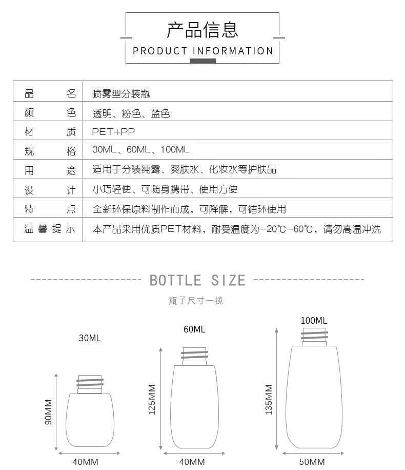 细腻雾化喷雾瓶,小巧便携,护肤品化妆品小样,便携装带,环保材质轻便随性,按压盖开口方便,细雾喷瓶更分散,旅行/出差/健身一套搞定~~