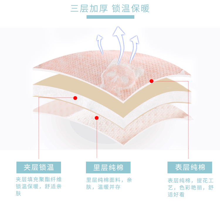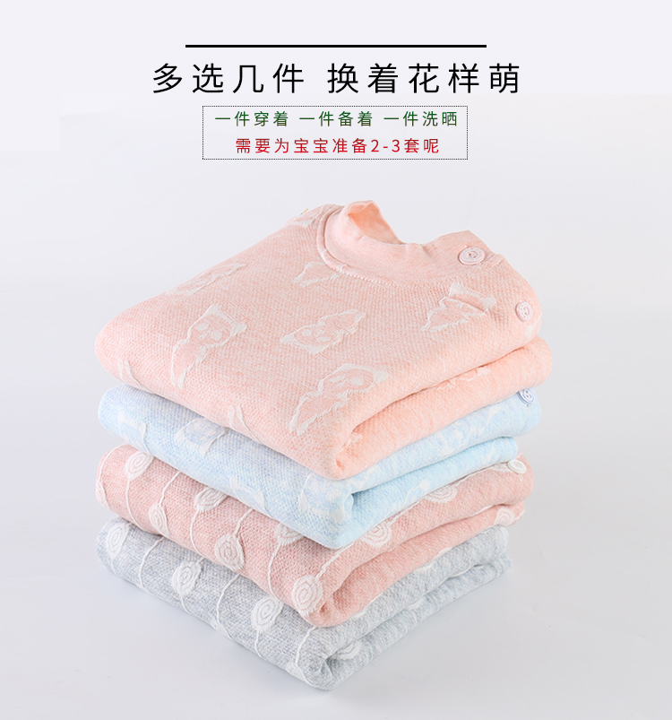 送运费险,三层加厚,里外层纯棉提花工艺,中间层夹棉填充,锁温更保暖,色彩鲜亮,舒适亲肤,开肩扣和两用档设计,更加方便。天冷了,给宝宝备上几套吧。