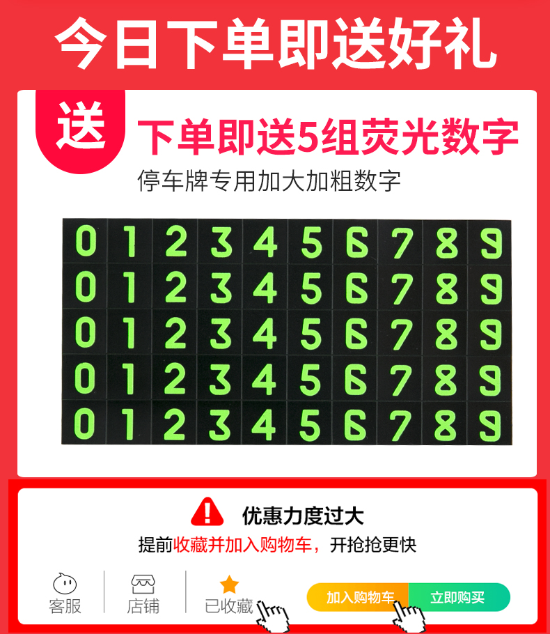 【送5组荧光数字】创意简约的临时停车号码牌,颜值爆表!一按就隐藏,防晒不变形,耐120度高温,荧光字体号码,保证夜间清晰可见~有车一族必备!