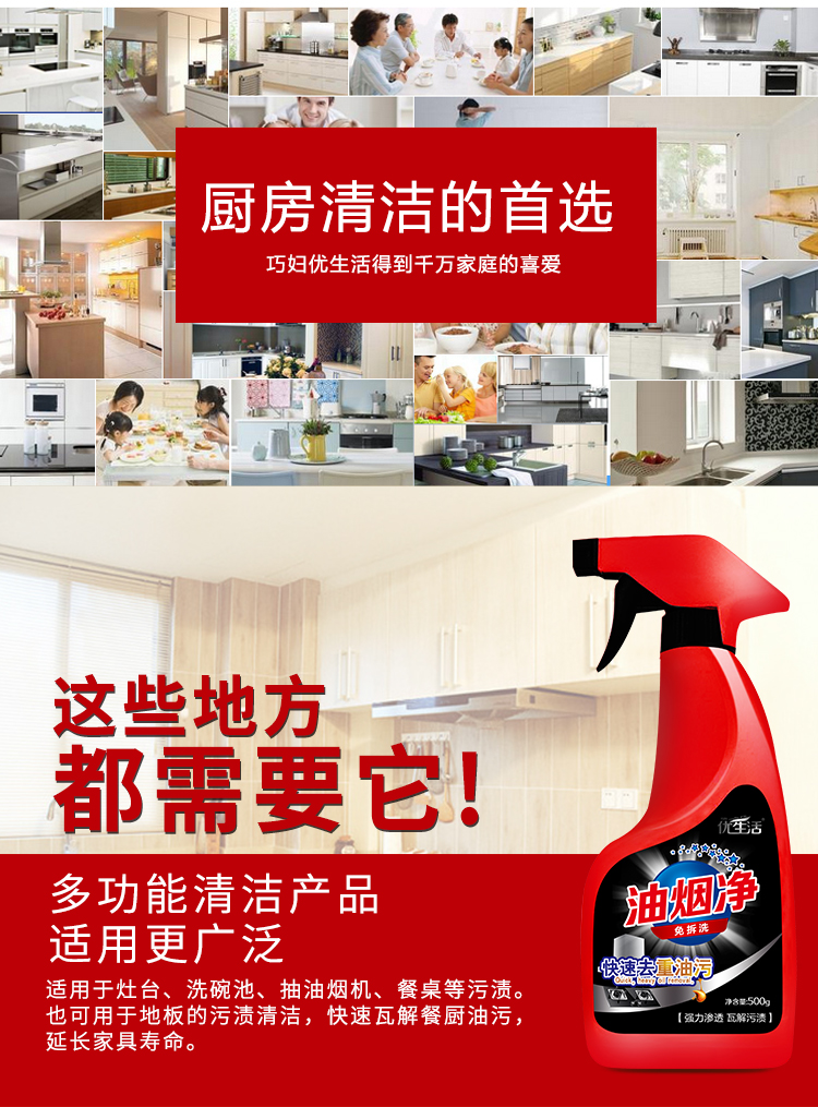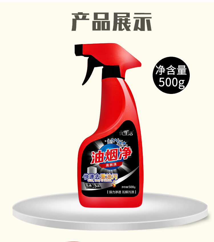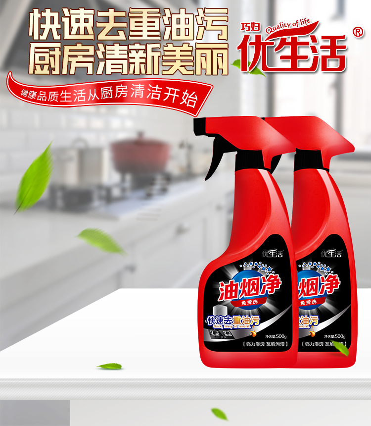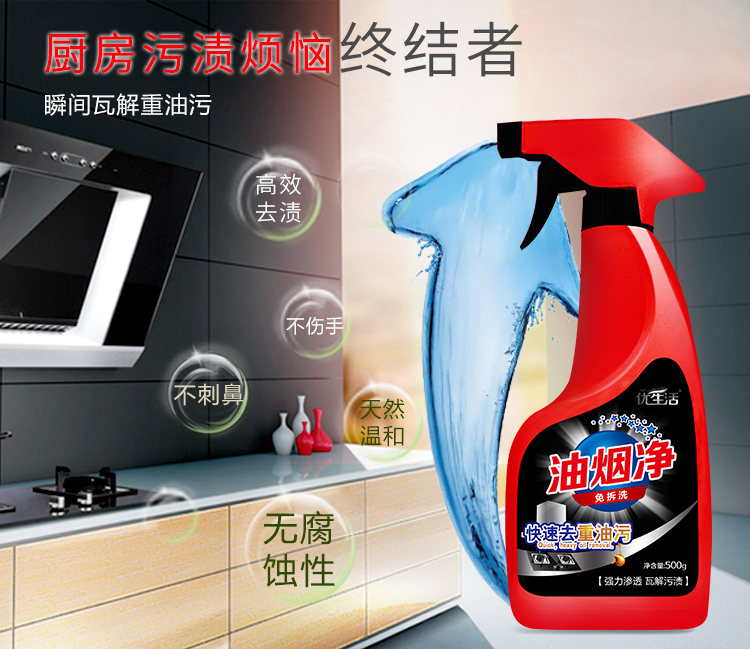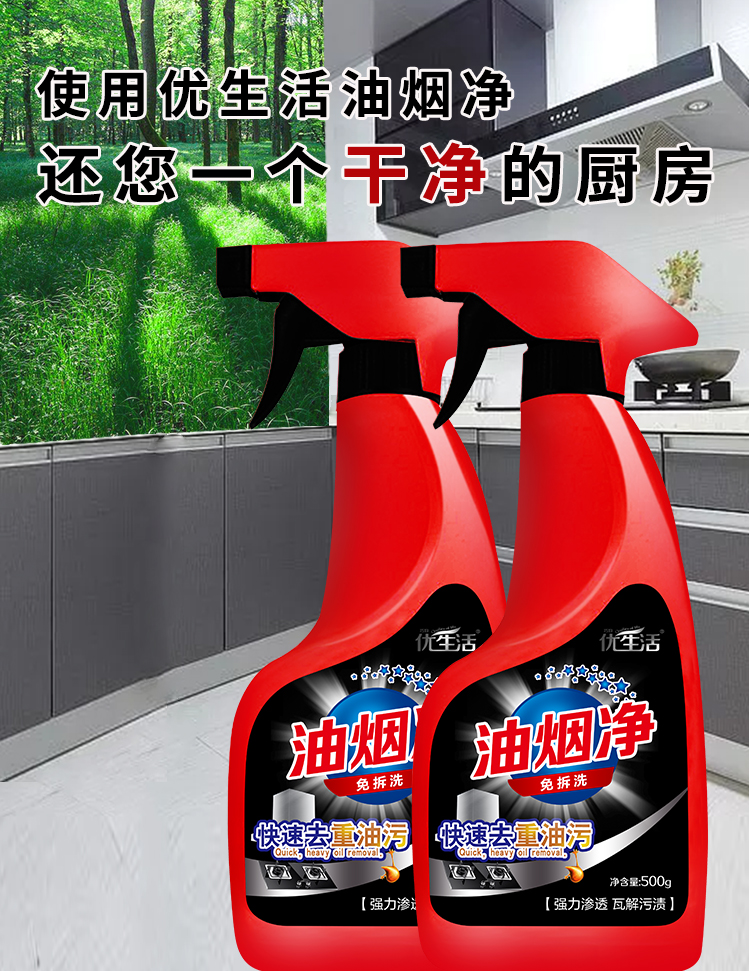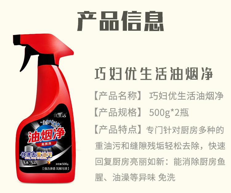 【超值装500g2瓶装】优生活油污净去污去异味,轻松瓦解顽固重油污渍,强力去污,厨房油污净,一喷一擦,轻松除油!!还你一个干净的厨房!!【赠运费险】