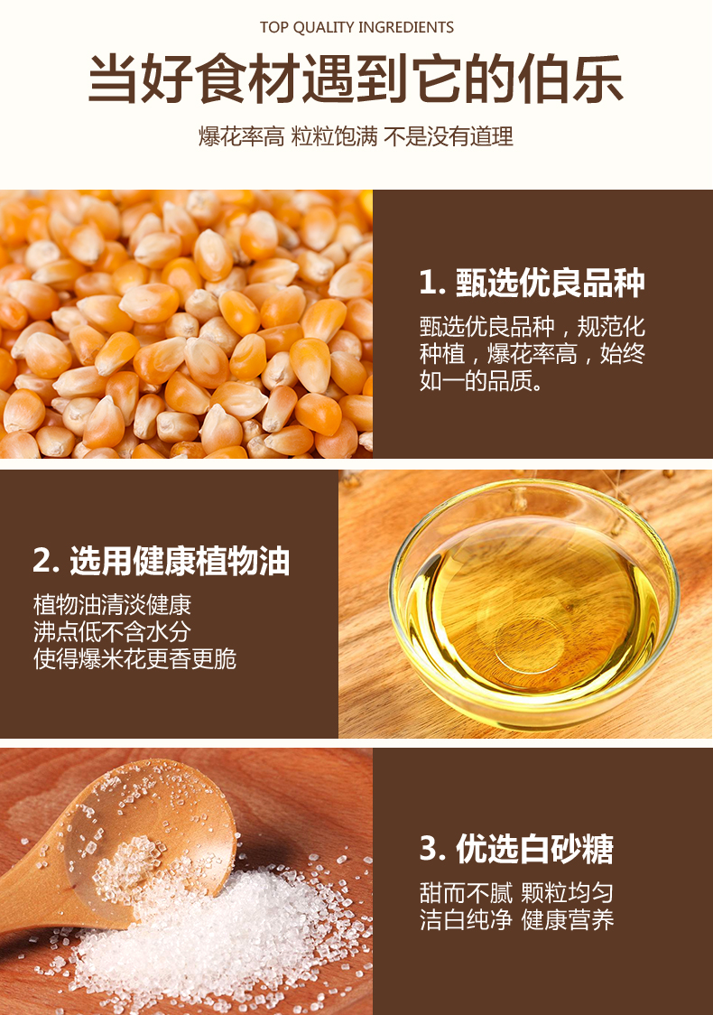 推荐理由:热裂球行爆米花三种口味等你来抢,采用鲜甜玉米加工而成,颜值高,味道好,一打开袋子,金黄色的玉米粒包裹着白色糖衣,让人食指大动,浓浓的香味,适度的甜味,精致细密,十分爽口。