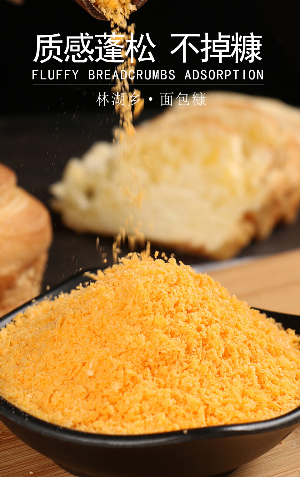 面包糠调味料,香酥酥软,可口鲜美,精选优质麦粉原料,质感蓬松,不掉糠,吸油少,久炸不发黑,黄金酥脆外酥里嫩,在家也能做出KFC的味道!
