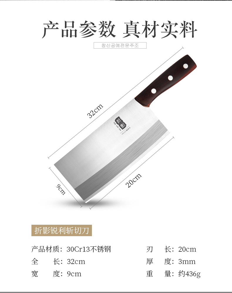 有把好刀,才能做好菜啊~折影20年老品牌!刀身一体成型无拼接,双面开封,锐不可当,手感舒适好握,切菜速度嗖嗖的,又快又省力~【全国包邮】
