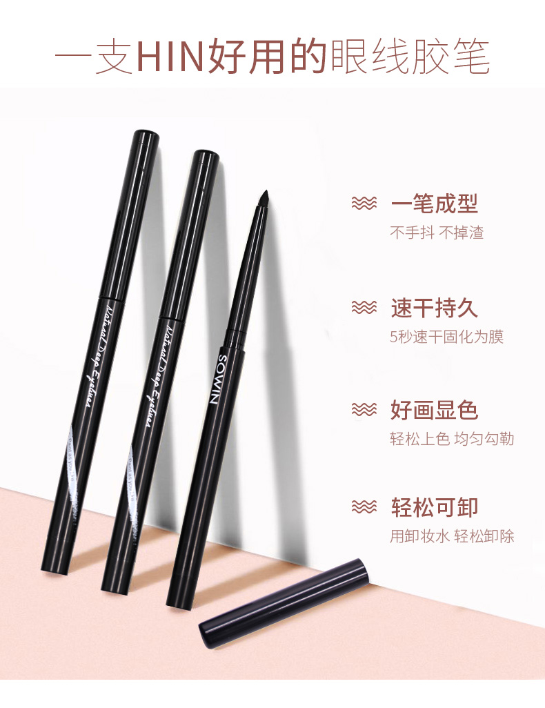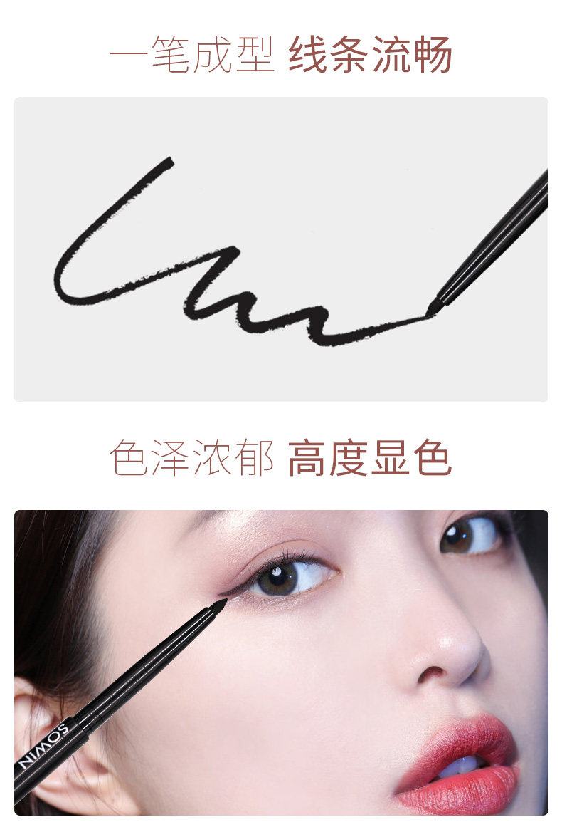 SOWIN雪影深邃眼线胶笔 一笔成型线条流畅,色泽浓郁高度显色 防水防汗不晕染,双头设计自带卷笔刀 买就送山羊奶护手霜,买两件还加送璀璨星光三色眼影盘