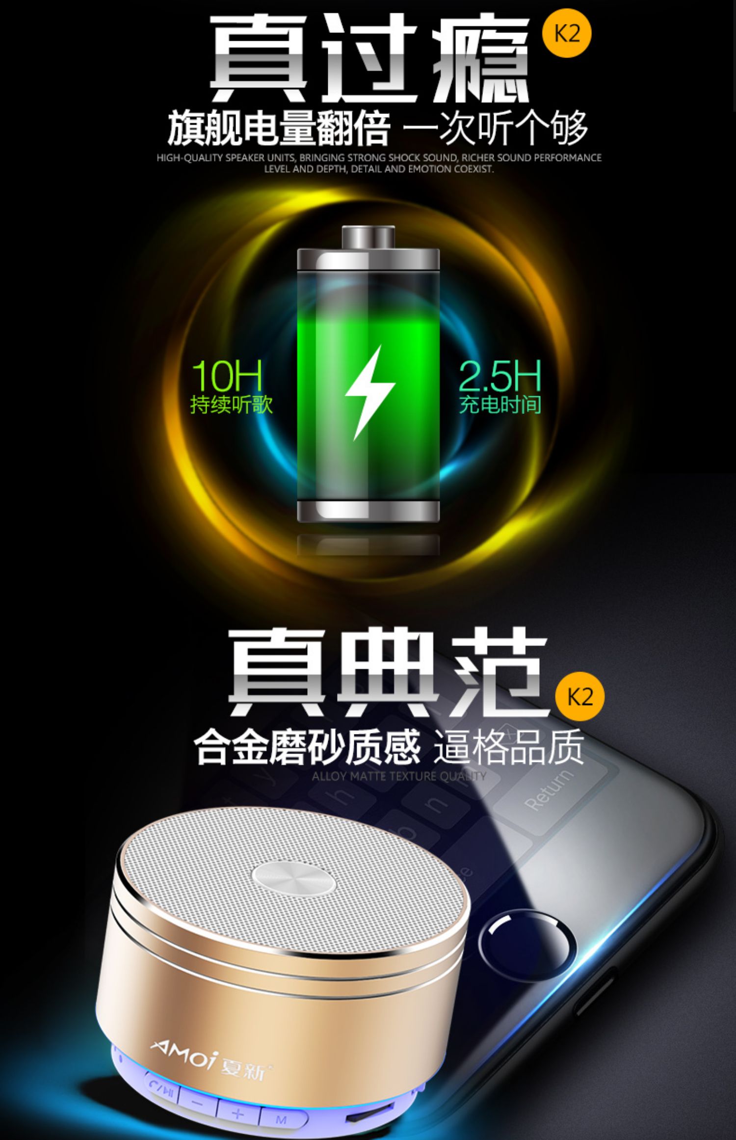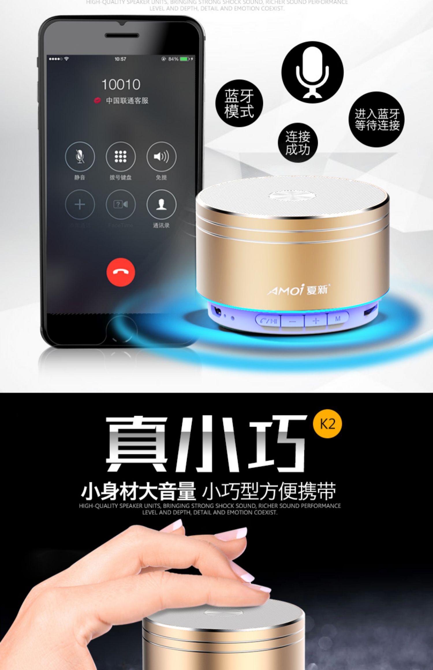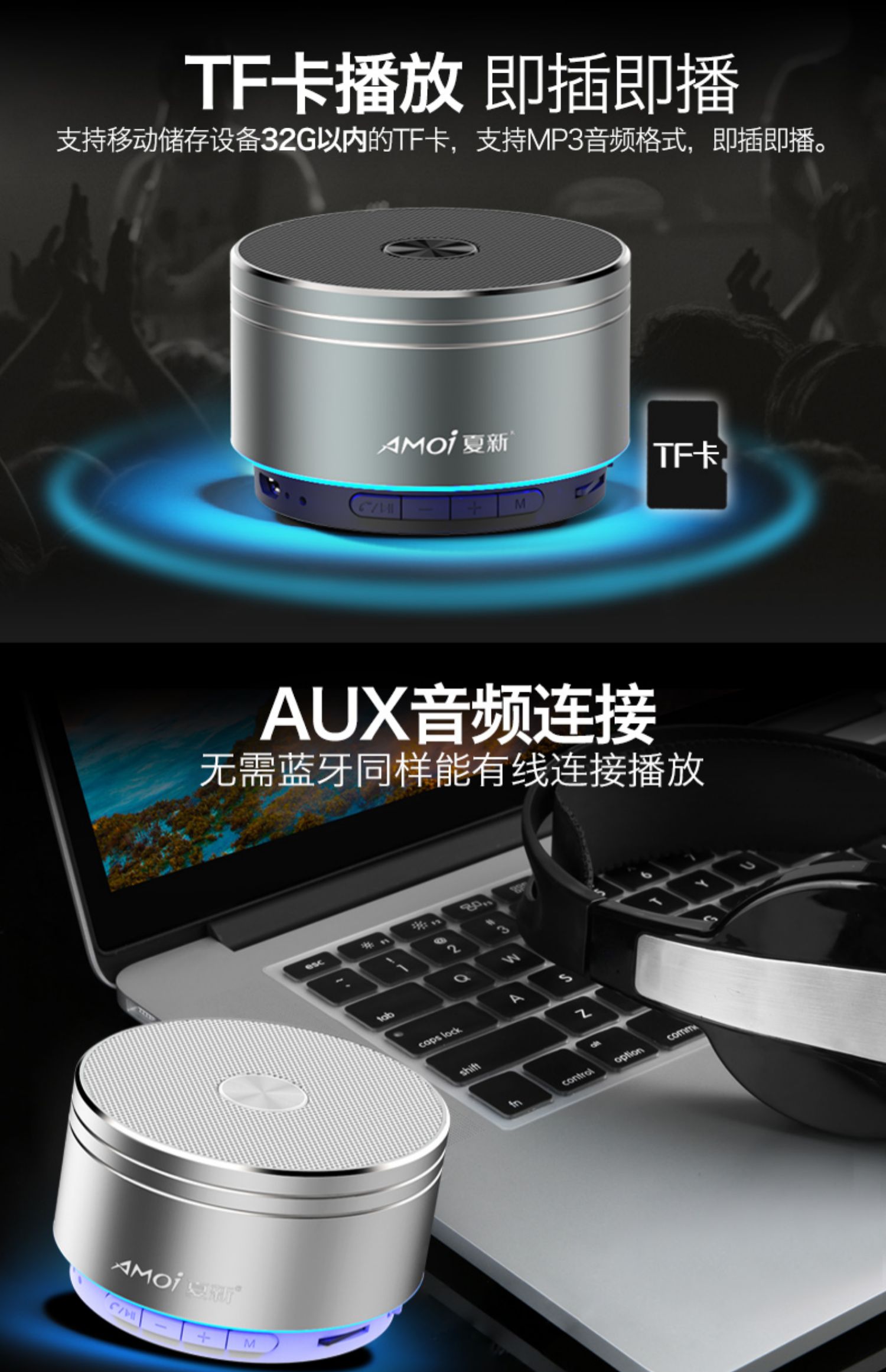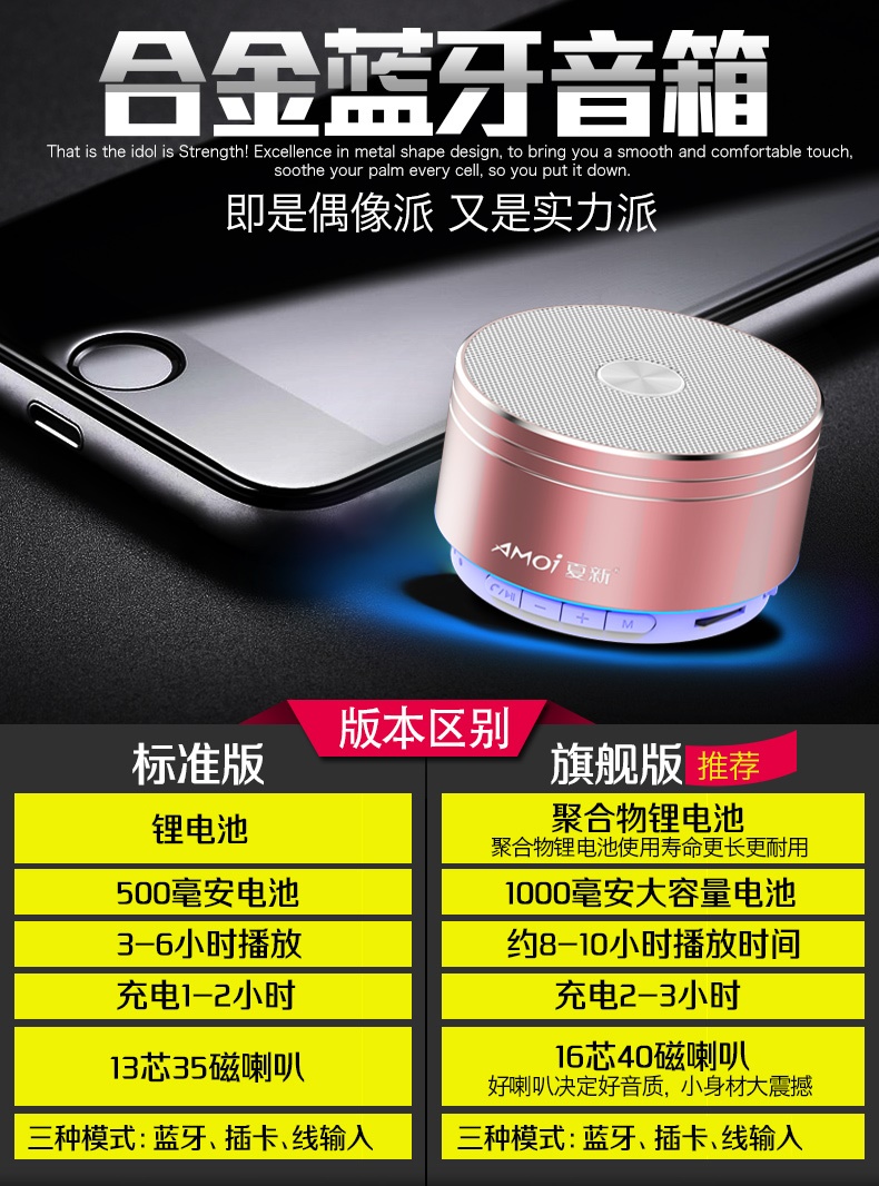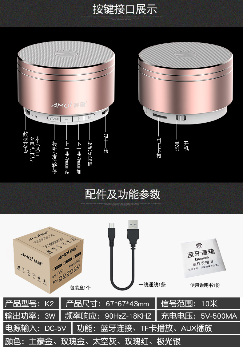 【买就送音频充电线】无线蓝牙一键记忆连接,高低音效果超棒,来电免提,支持TF卡输出,充电快电池续航时间长,简直爱不释手~