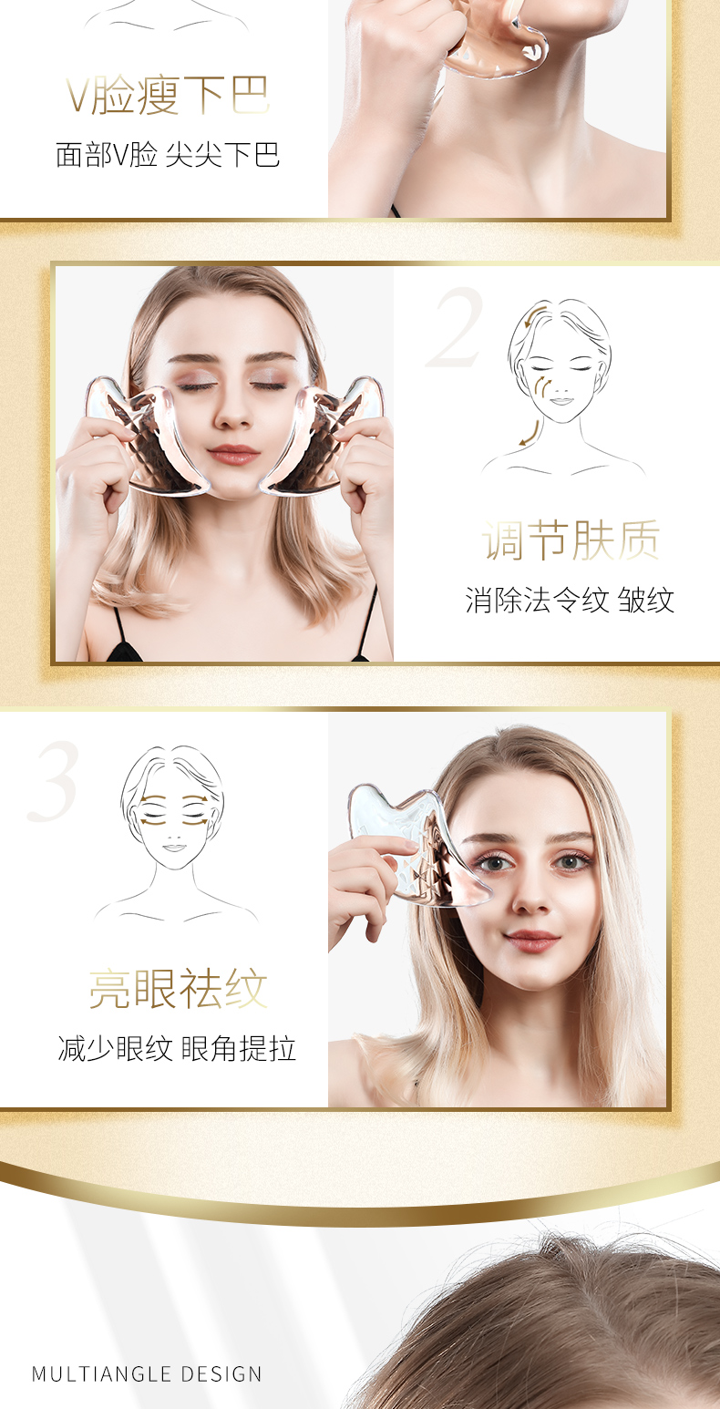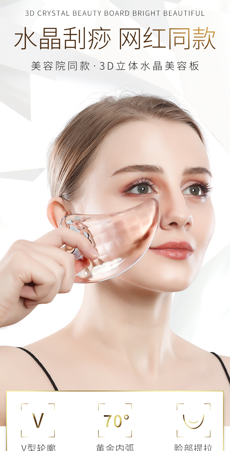 【全身通用】正品水晶刮痧板,四大功效,排毒紧致,V脸塑形,减少皱纹,眼角提拉,美容养颜,全身均可刮痧,疏通经络,每天几分钟,提拉眼角,紧致面部~