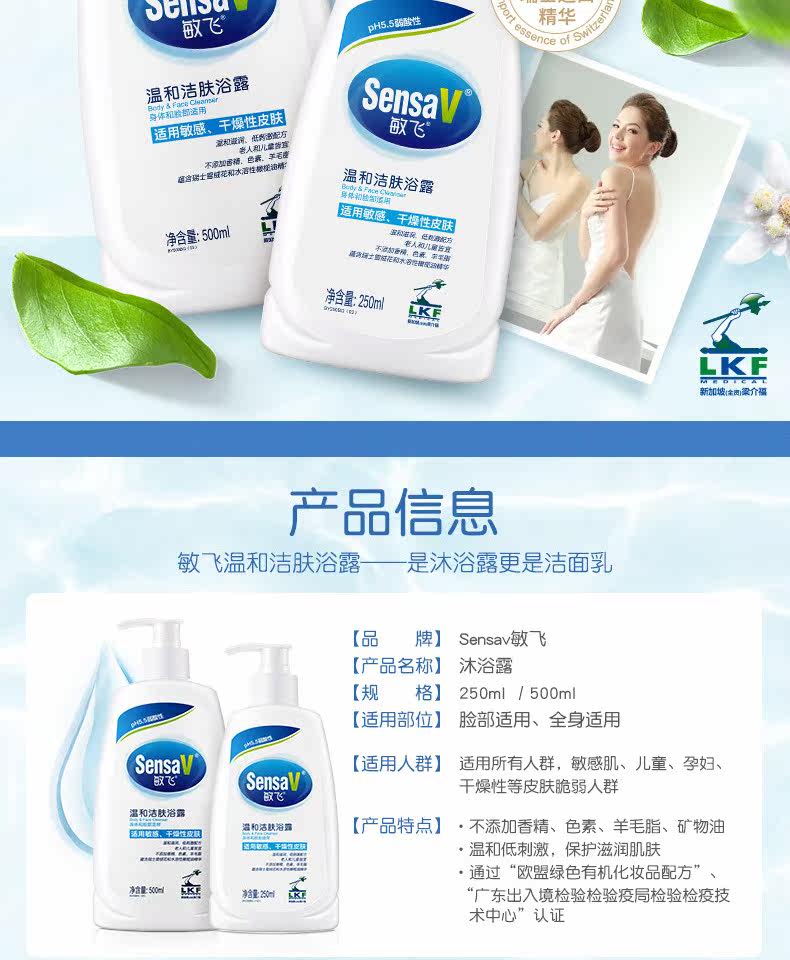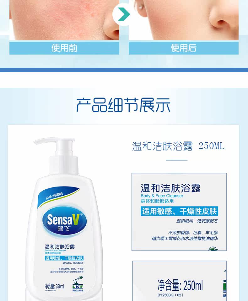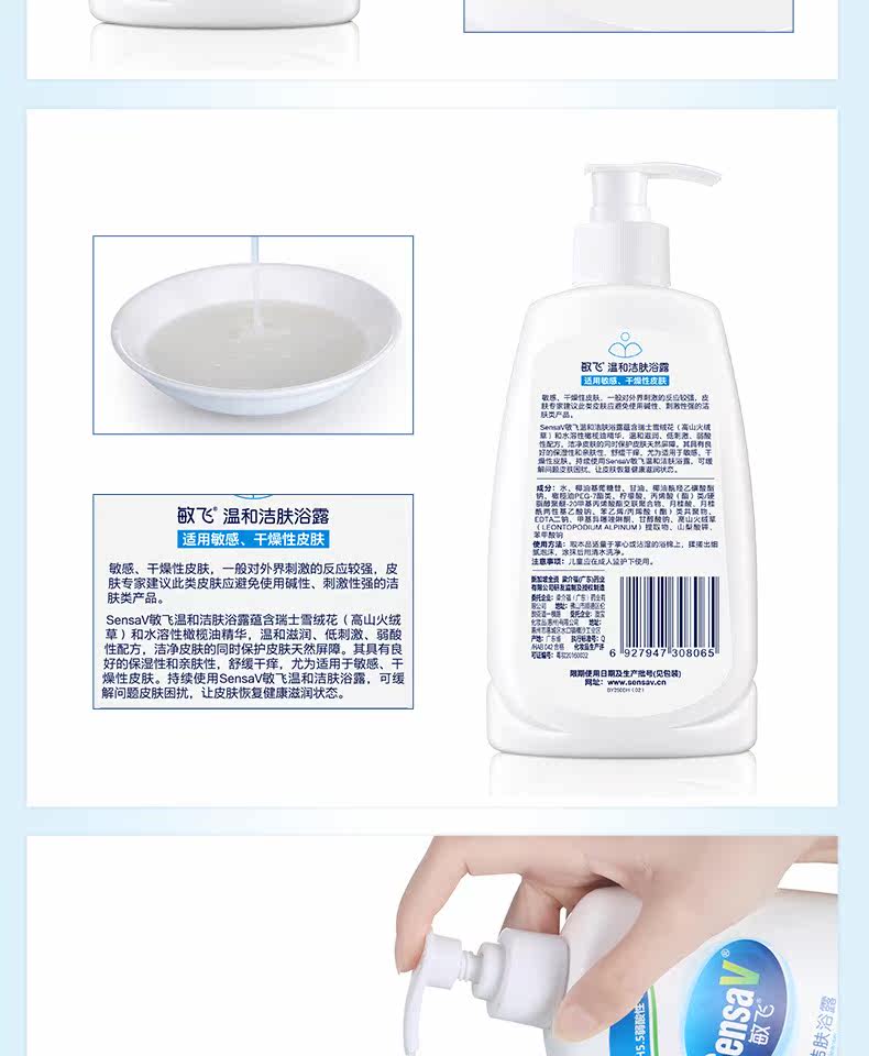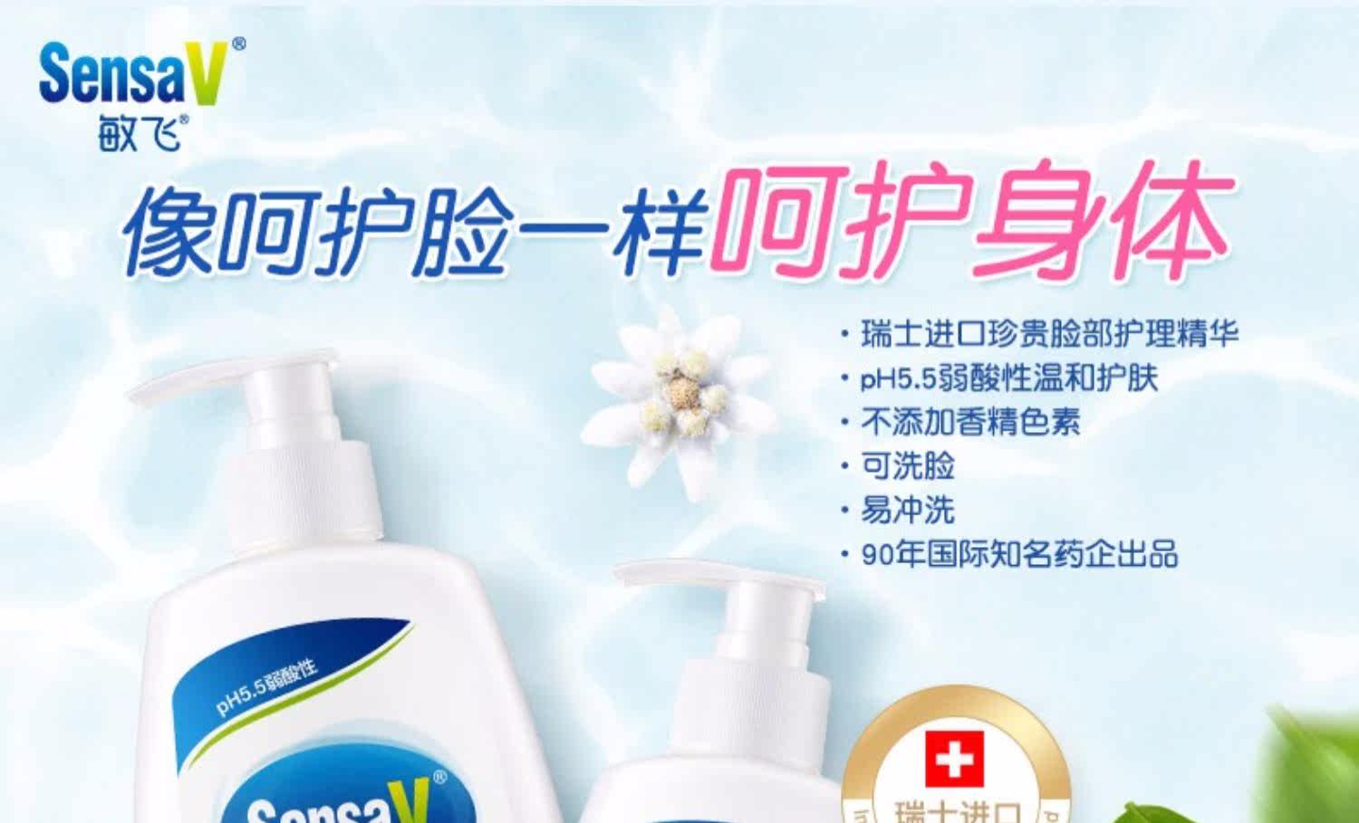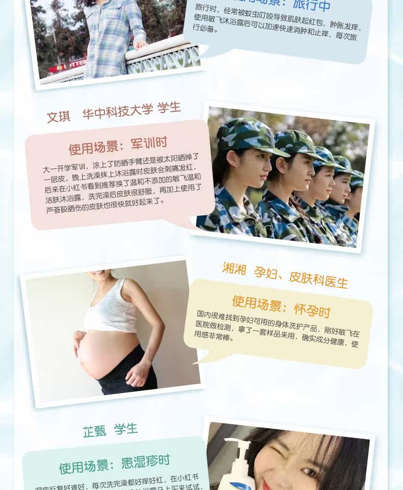 敏飞沐浴乳,弱酸性,补水沐浴露,温和保湿,敏感肌婴儿孕妇全身滋润,无加香精,无加色素,敏感肌适用【赠运费险】