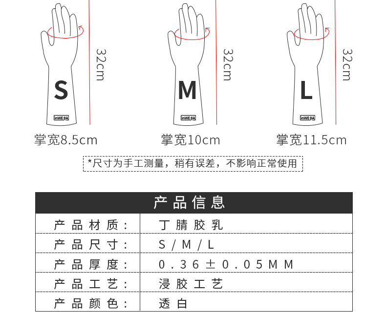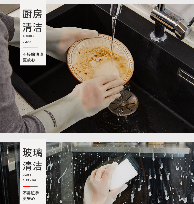 【买一送一】耐用透明丁晴胶手套,韧性强,耐拉扯,防勾破,耐刮擦,耐酸碱性,防滑颗粒,穿戴便捷,手是女人的第二张脸,请爱自己多一点【赠运费险】