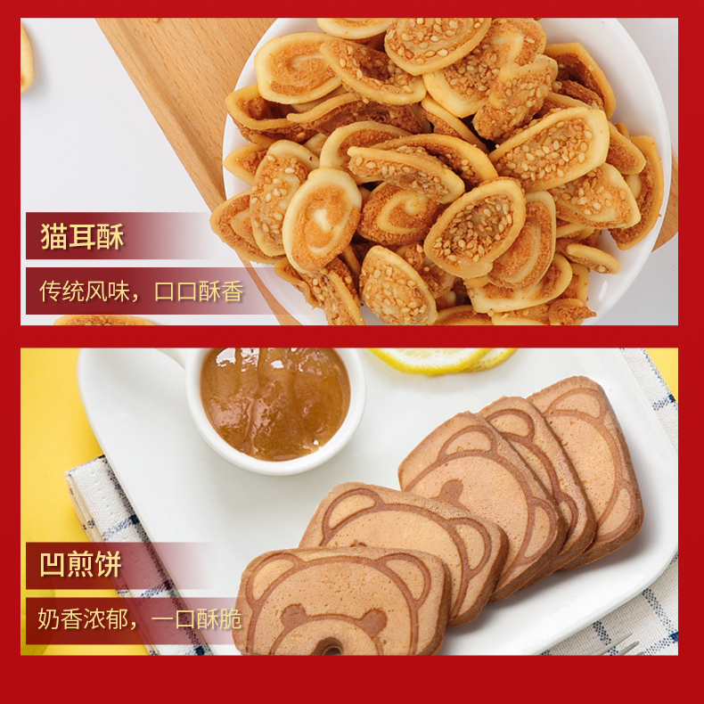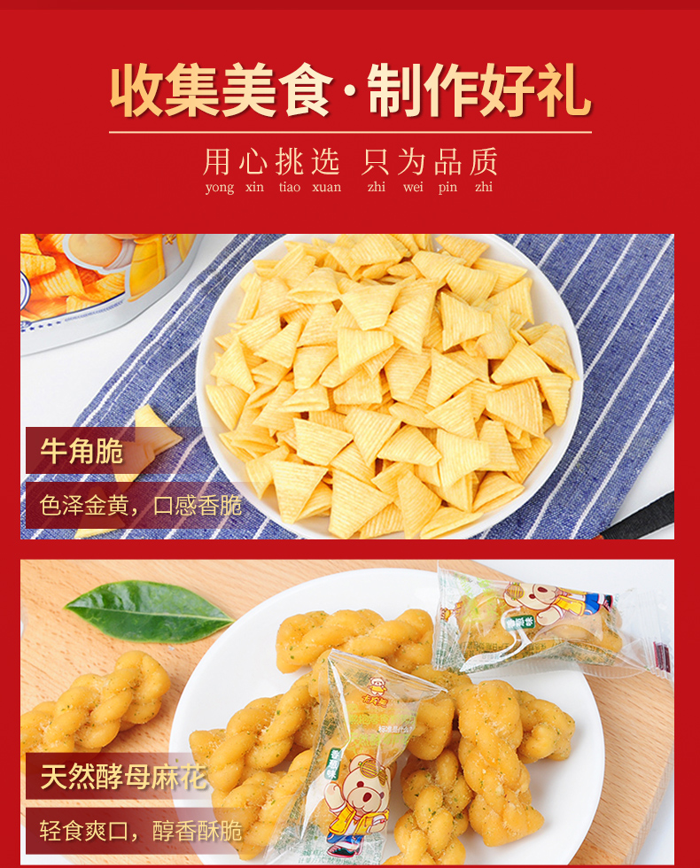 【推荐】网红休闲小零食!永辉、大润发等各大超市均有售!【内含:凹煎饼,猫耳酥,牛角脆,酵母麻花,牛轧糖】超值组合装918g共12袋,折合一袋才3.16!超值!大人小孩都爱吃的零食!送礼倍有面儿!赶紧囤