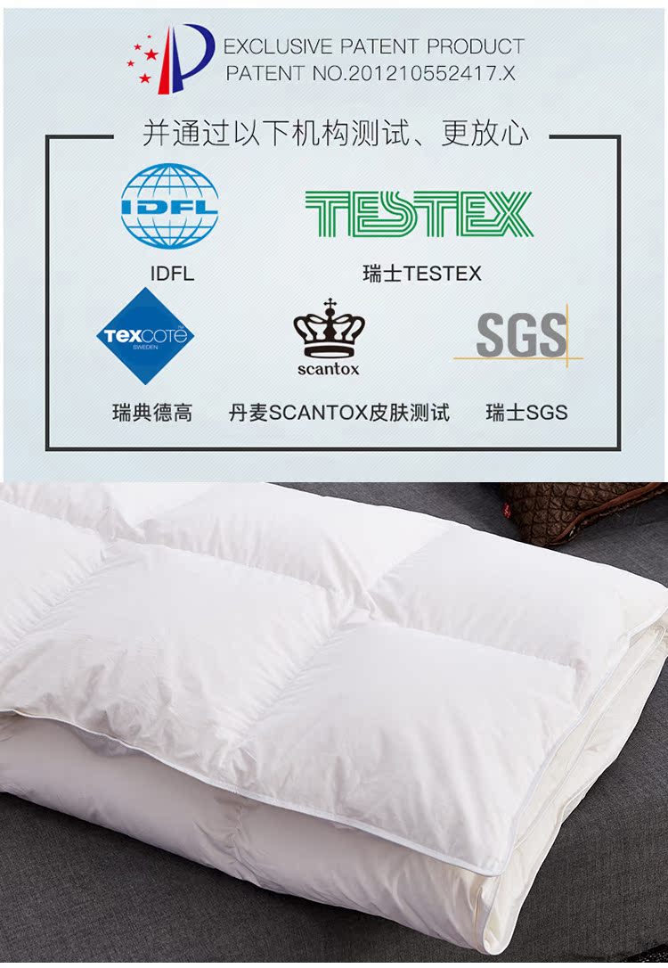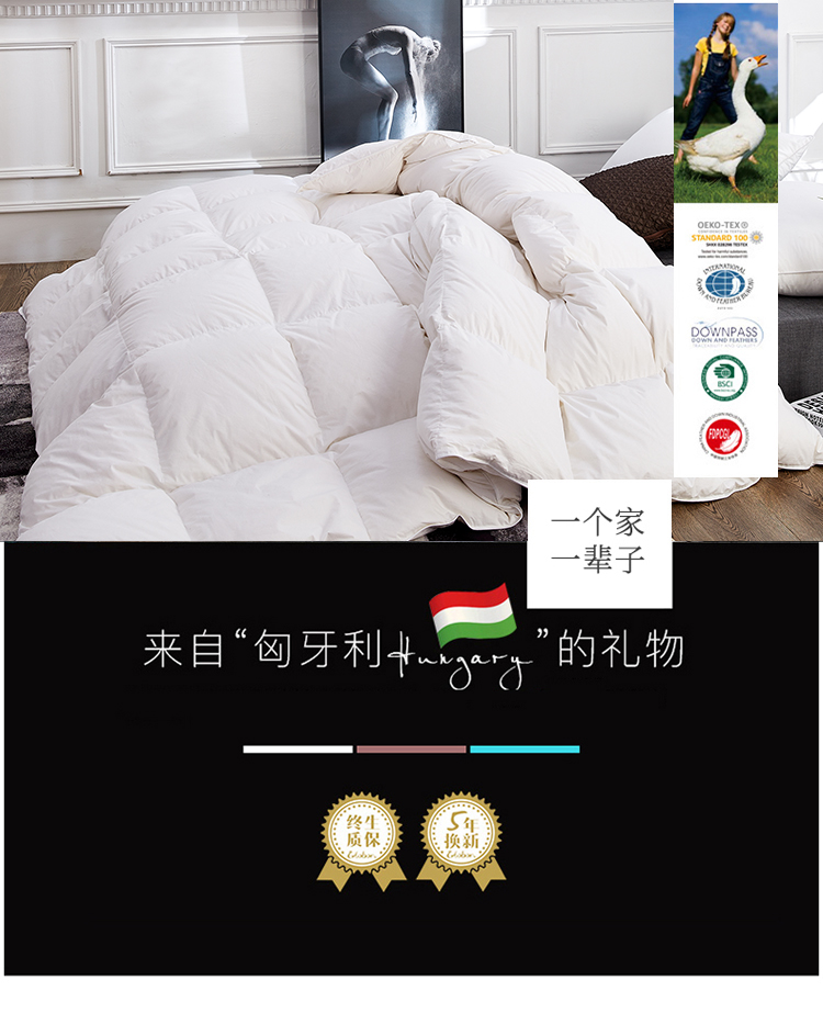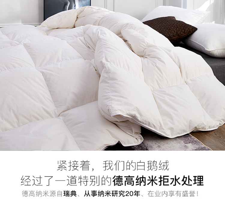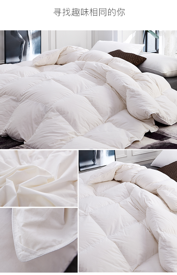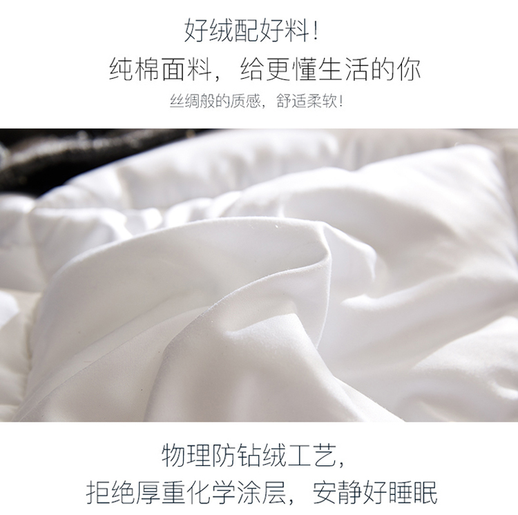 白鹅毛填充,采用德国不钻绒技术,质量做工杠杠滴!盖着又暖又舒服!让你睡觉更香甜【赠运费险】