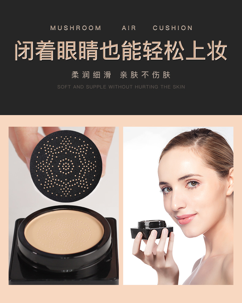 【屈臣氏有售】柔弹立体小蘑菇,360度无死角遮瑕,两百多个精细粉孔,防水不脱妆,上妆简单不脏手~会护肤的气垫,比普通气垫更持久,更服帖!