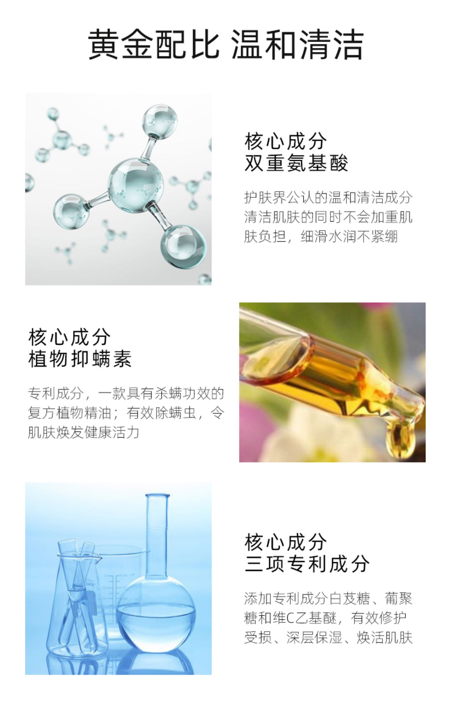 清满氨基酸洁面乳,洗出毛孔清透感,植物除螨控油,改善痘肌,舒缓抗敏,深层清洁有效修护,活性氨基酸温和保湿!