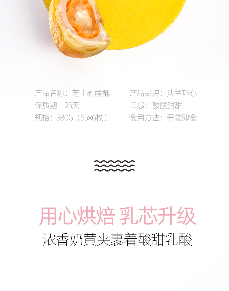 【Frachic法兰巧心】广西特产流心芝士乳酸菌酥55g*6枚,超级美味网红零食糕点。雪媚娘包裹流心芝士乳酸菌,酸甜不腻,美味享受。