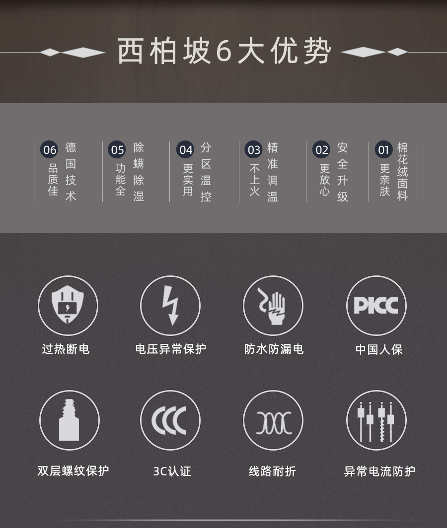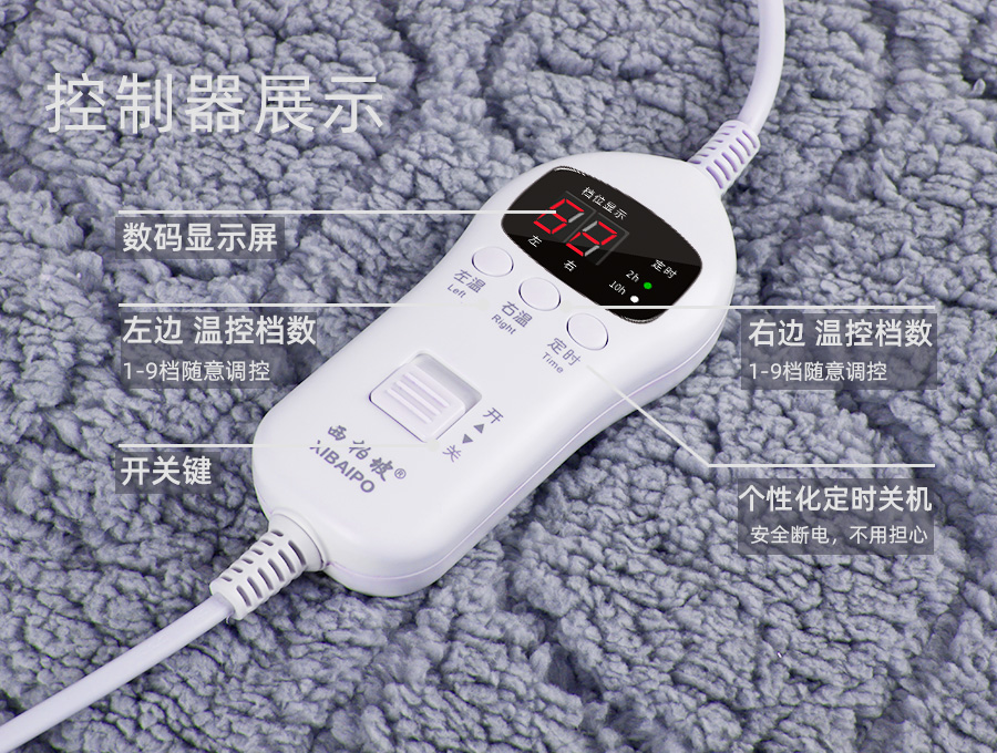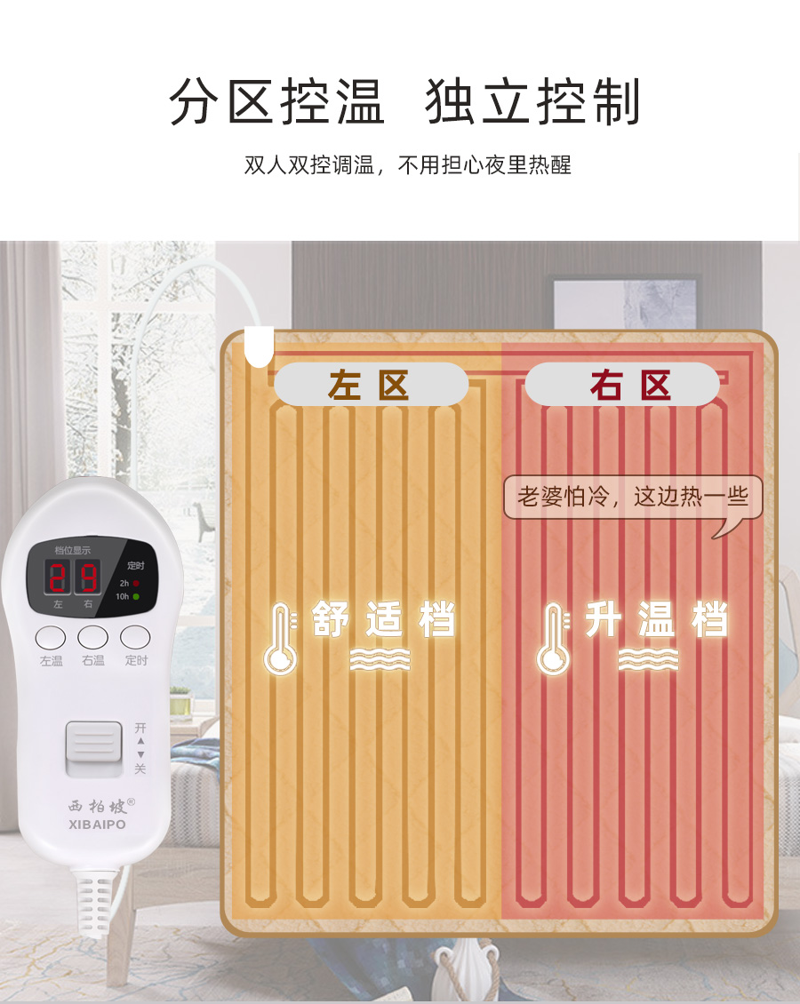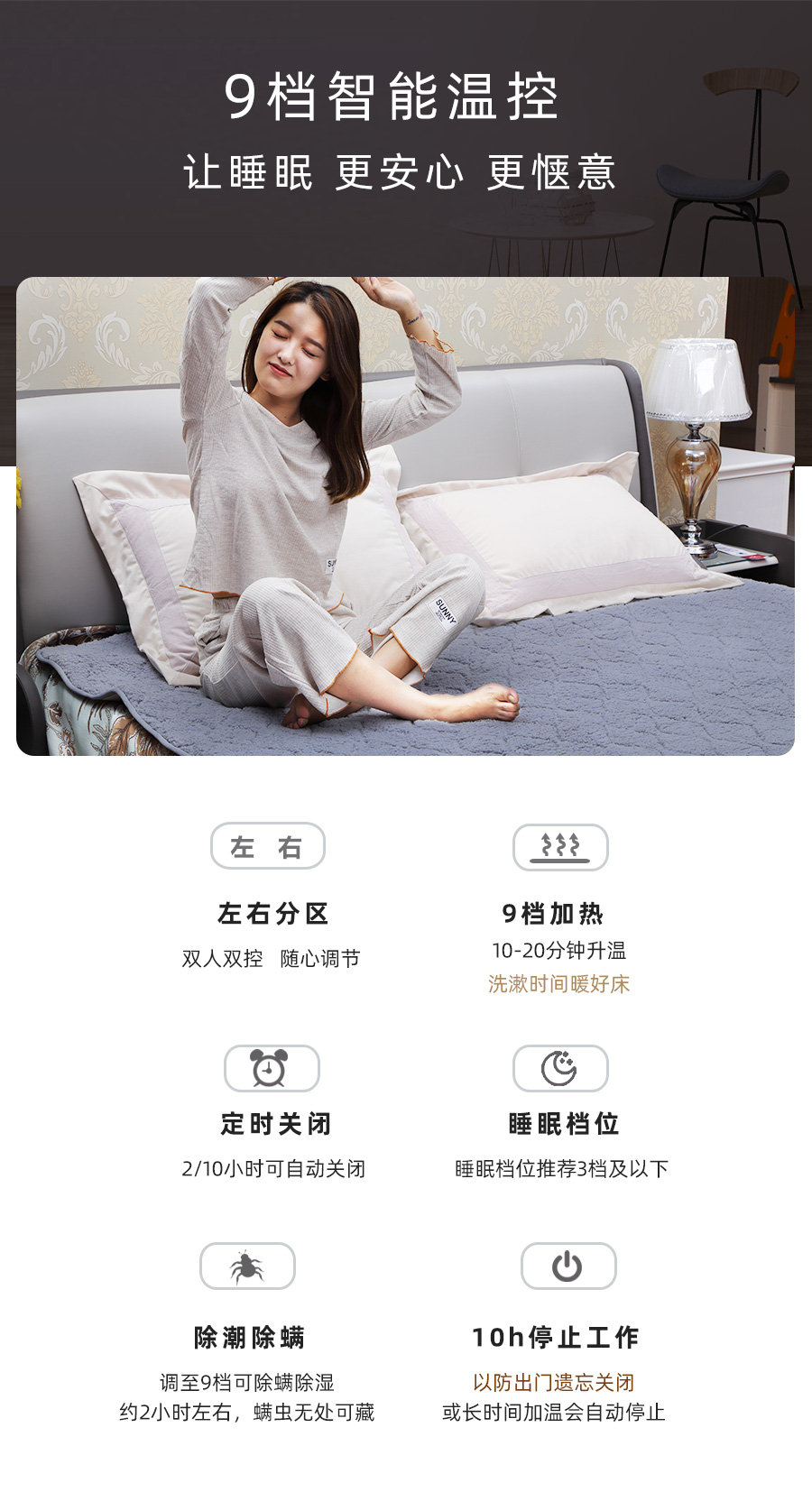 【降温了!下单趁早!】西柏坡电热毯放心用!优选舒适阻燃面料,安全防漏电,迅速升温,9档调温,自动除螨,智能定时自动断电,左右温区独立控制,满足不同需求,给您一个暖暖的冬天!【赠运费险】