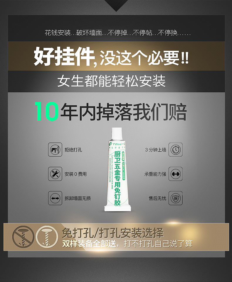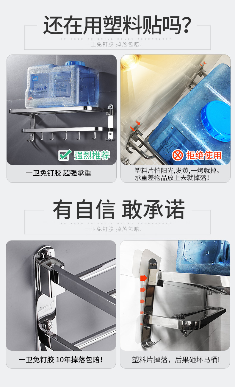 【10个装】免打孔全304不锈钢挂钩,高大上材质,一撕一贴特别方便,卫生间、厨房到处能用,不生锈,加宽加厚超强承重,质保30年!生活如此方便~