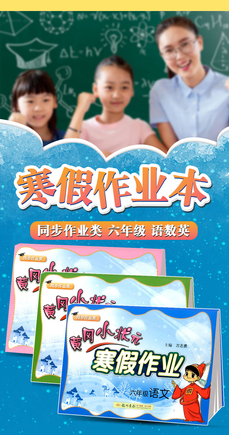 【赠2份学习礼品】3本黄冈小状元六年级数学+语文寒假作业,买就送各类书籍,名师归纳,全国通用,清洗印刷,保护视力,内容丰富,题型有趣,寒假作业本,锻炼孩子的学习能力。
