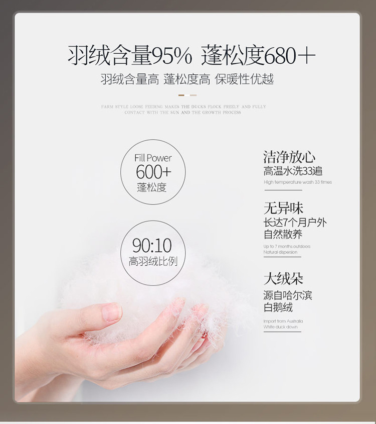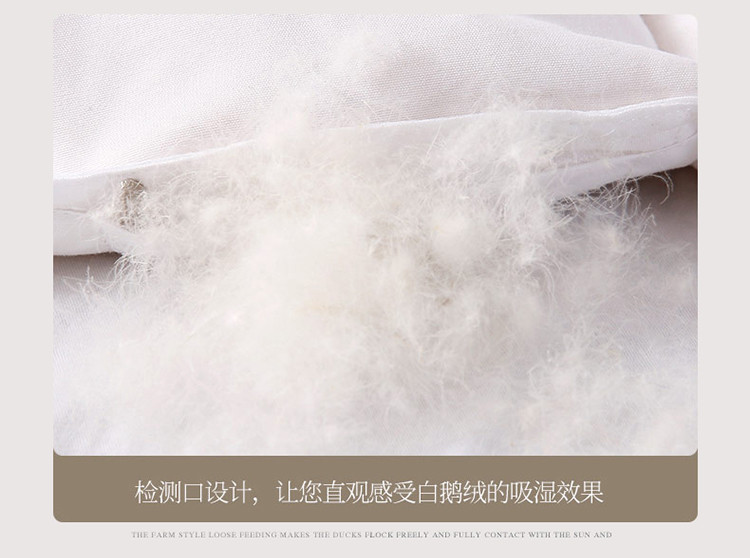 立体边裁剪缝制,高密度透气不跑绒,95%白鸭绒填充,立体航空仓设计充绒均匀,不移位+不结团,绒朵大抗菌处理,轻盈松软弹性好,呵护您的睡眠,记得抢【赠送运费险】