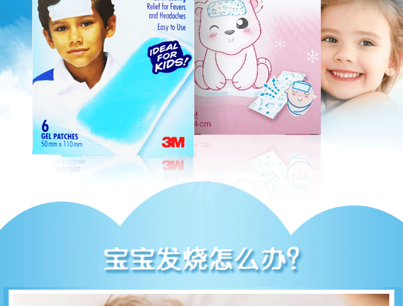 孩子突然发烧怎么办?来一片3M冰贴!物理降温,冷敷理疗,退烧退热,消暑降温,无副作用,0刺激,很安全,不伤身,让孩子安全退烧!!