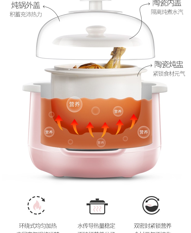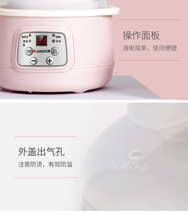 大牌志高全自动电炖锅,可24小时可预约,隔水慢炖,锁住营养。多功能全自动免看管。母婴膳食,全都能行。赶紧买一个,给宝宝做营养美味的辅食吧~