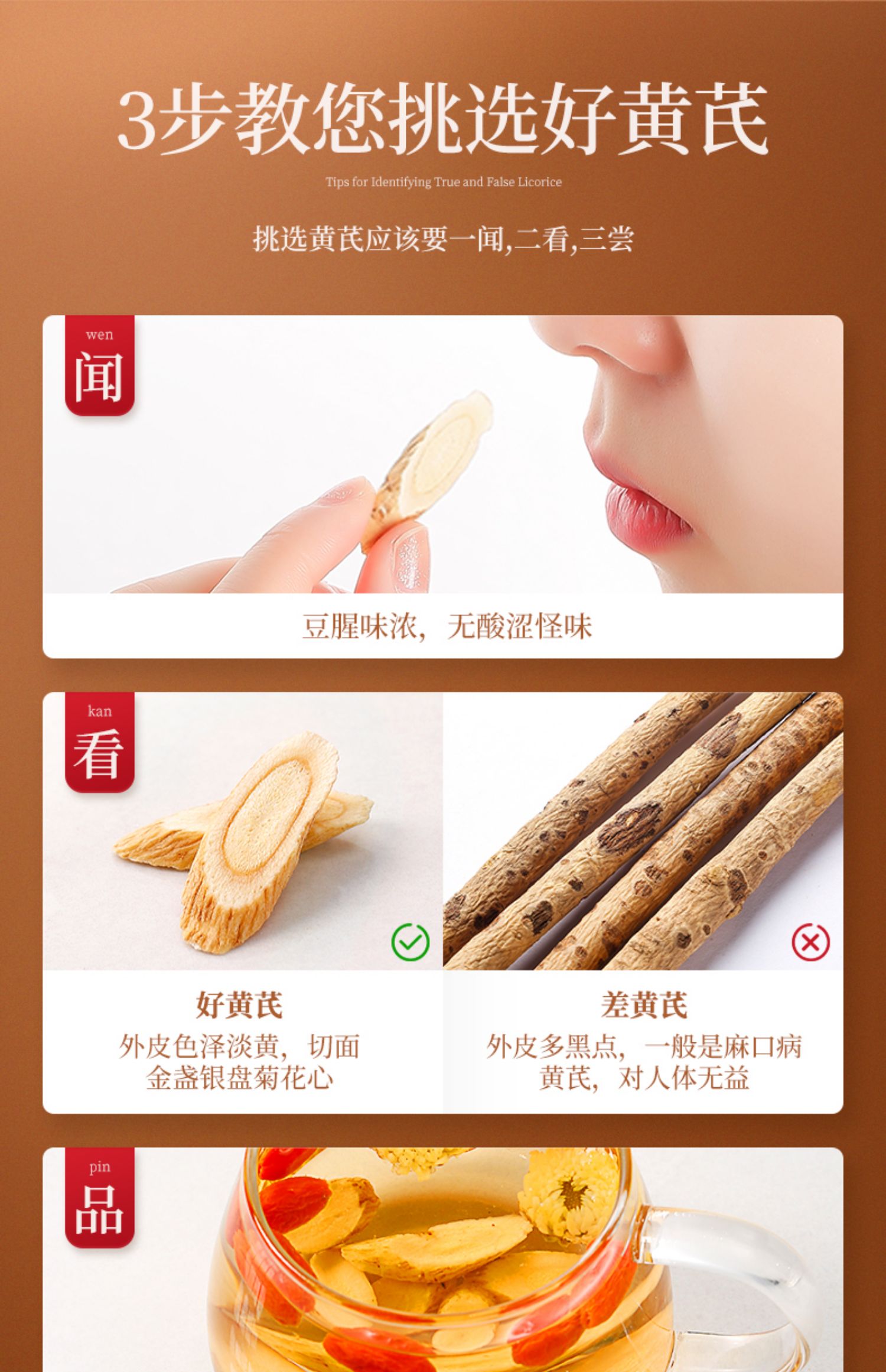 黄芪补气血,搭配上枸杞,大枣来泡水,口感特别好!满满一大袋,份量很足!而且颗颗都是干净的,片片都是金盏银盘菊花芯,同品质比药店便宜超多!!